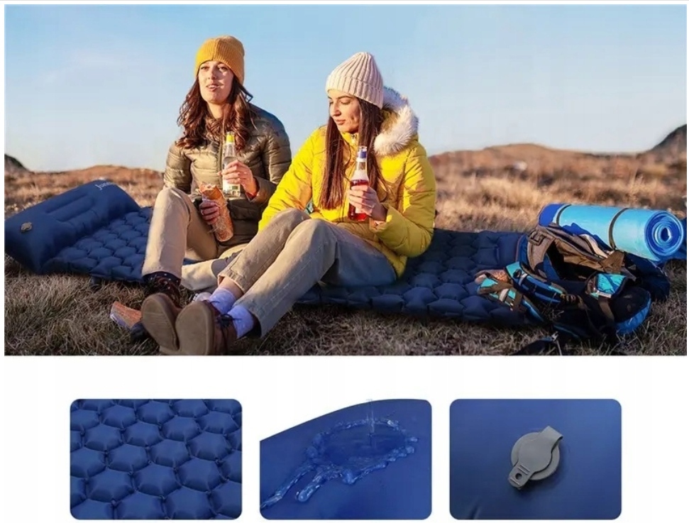 ULTRALEKKA MATA WBUDOWANA POMPKA KARIMATA GRUBY WYGODNY MATERAC ŁÓŻKO BLUE