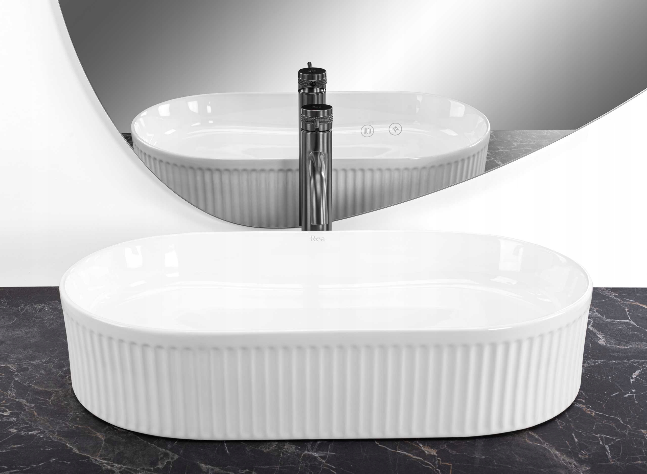 УМИВАЛЬНИК З РЕБРИСТОЮ СТІЛЬНІЦЮ, ОВАЛЬНИЙ, БІЛИЙ REA VANDA 61 КЕРАМІКА
