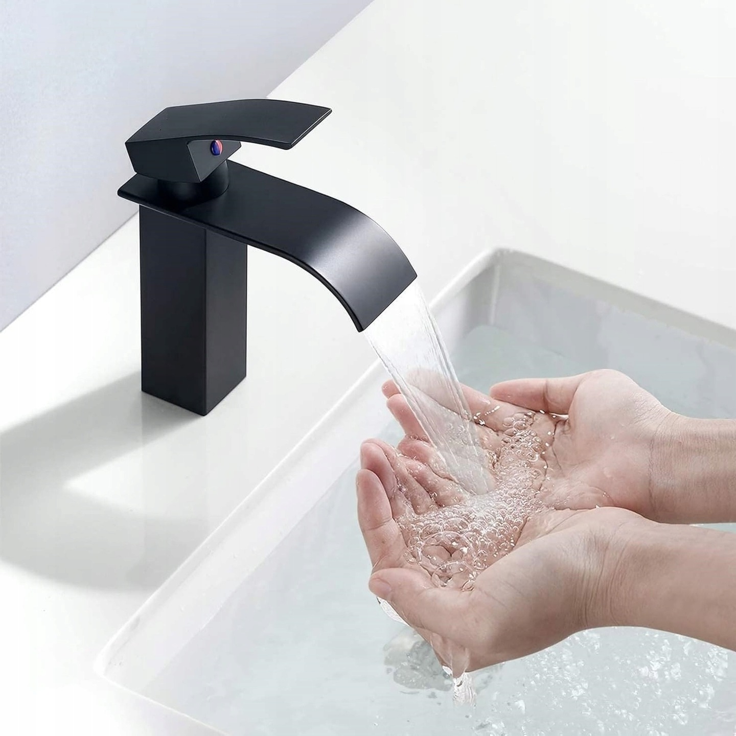 УМИВАЛЬНИК ВУЗЬКИЙ, маленький, 50х24, ПІДВІСНИЙ + змішувач КАСКАД, чорний матовий