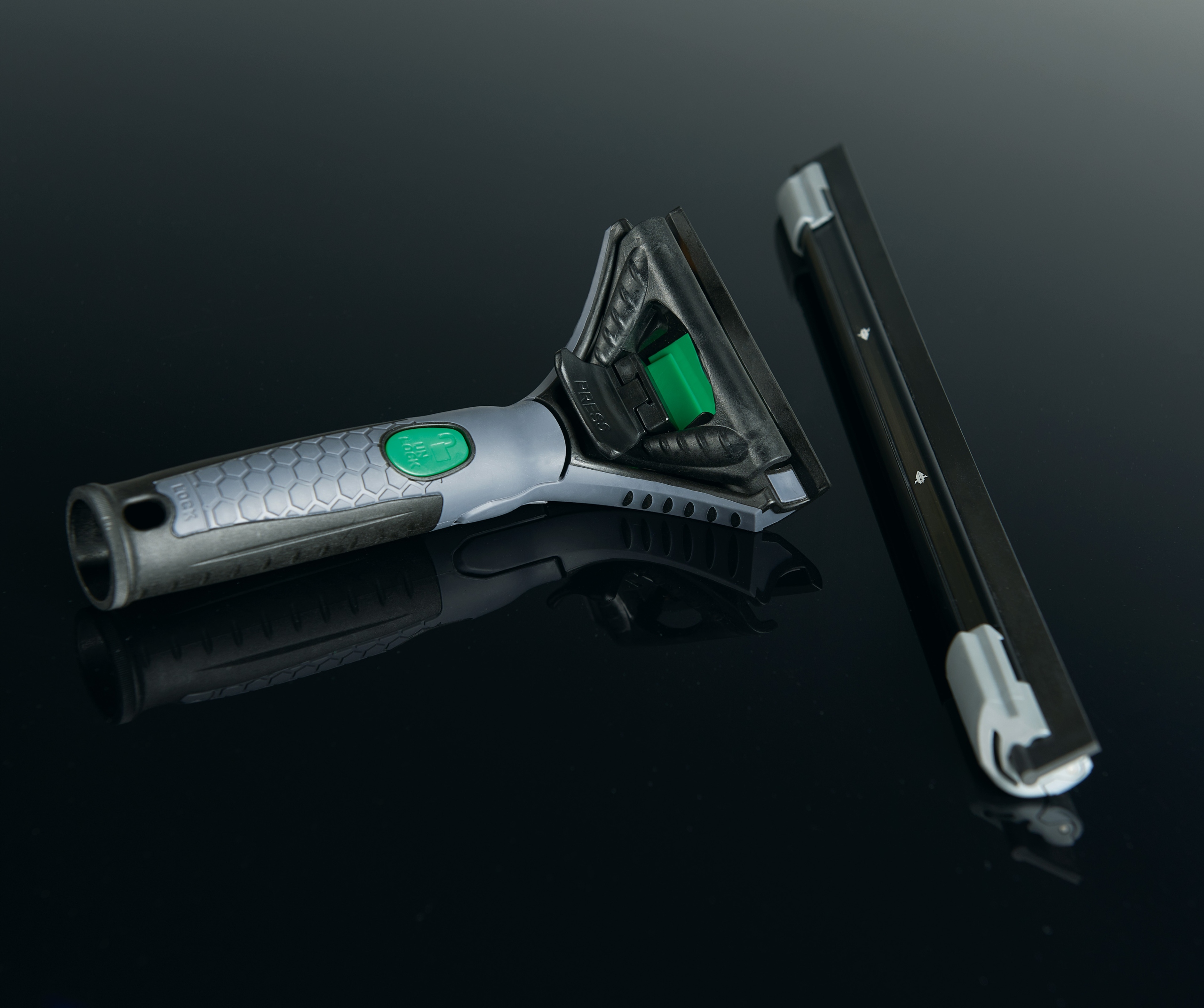 Ракель ErgoTec® Ninja було оновлено багатьма чудовими функціями, які пропонують численні переваги для професійного миття вікон. Ефективний і ефективний, він доступний у довжині від 20 см до 105 см. Смуга довжиною до 105 см радикально скорочує час, необхідний для очищення великого скла, дозволяючи досягти більшого за менший час. Механізм TriLoc, який вже використовується в ракелі, запобігає випадковому відриву смужки від ручки, тому ви можете швидко та безпечно змінити смужку та змінити положення ракеля. Екструдована алюмінієва стрічка позначена зірочками Ninja, щоб полегшити позиціонування ручки в середині стрічки. Проте гумовий ракель можна розмістити в двох положеннях залежно від довжини смужки, щоб отримати оптимальний тиск на поверхню, що миється: нижче положення для коротших смужок, вище для довших.