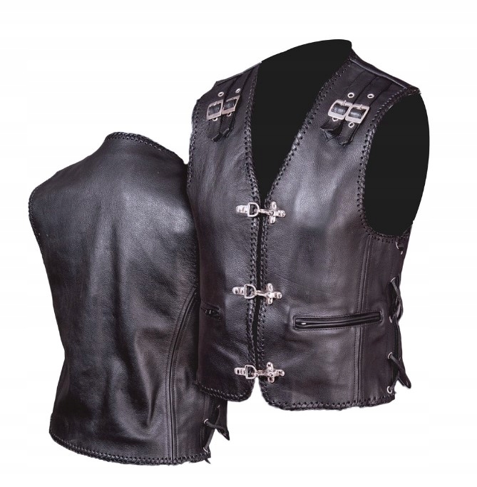 Шкіряний мотоциклетний жилет моделі KM005 від L&J RYPARD, безсумнівно, є бестселером і флагманом нашого бренду в категорії шкіряних жилетів. Він ретельно допрацьовувався протягом багатьох років і виготовлений з натуральної волової шкіри найвищої якості, завдяки чому його цінують навіть найвимогливіші мотоциклісти. Багато декорований - шкіряні краї, надзвичайно міцні та міцні сталеві карабіни, хромовані люверси, товсті шкіряні ремінці для регулювання та, перш за все, декоративні пряжки на плечах, які надають йому унікального та неповторного дизайну. Зшиті з великих листів шкіри для запобігання стиків у місцях, де найчастіше нашиваються клубні нашивки або емблеми. Ідеально підходить як піджак, так і футболка, він додасть вам елегантності та класу, і водночас дозволить виділитися з натовпу.