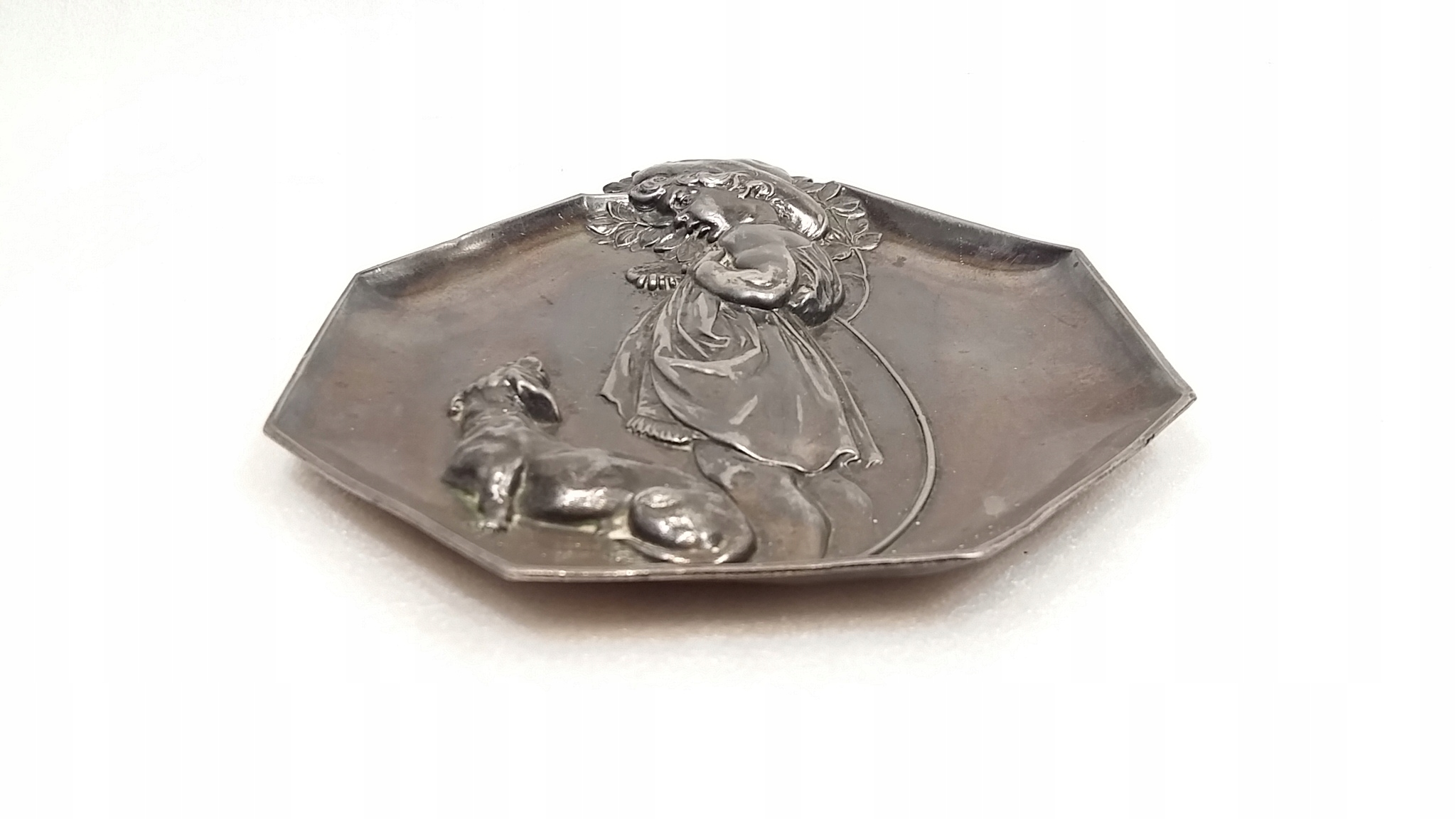 UNIKATOWA PATERA POSREBRZANA WMF - DZIEWCZYNKA I PIES