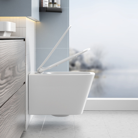 ПІДВІСНИЙ УНІТАЗ RIMLESS RINA-WH-03, БІЛЕ СИДІННЯ ДЮРОПЛАСТ З ПОВІЛЬНИМ ЗАКРИВАННЯМ