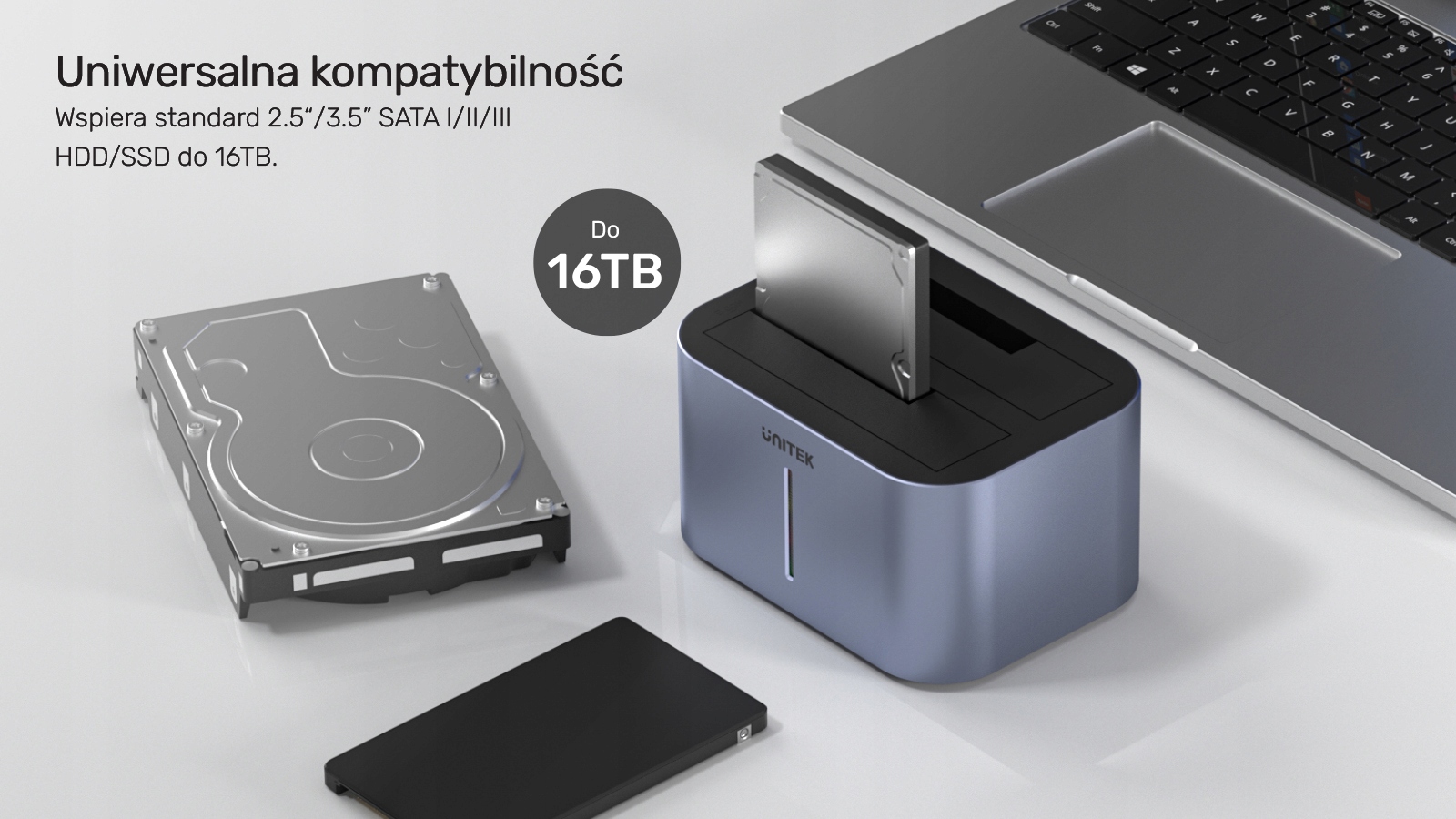 До пристрою можна підключити два диски SATA I, II або III ємністю до 8 ТБ. Диск-рідер підтримує 2,5- і 3,5-дюймові носії, HDD і SSD. Ви можете передавати дані між накопичувачами або на комп’ютер через надшвидкий роз’єм USB 3.2 Gen1 із пропускною здатністю до 5 Гбіт/с. Тому рідер можна використовувати не тільки для клонування, а й як носій масової інформації - два диски забезпечують сумарно до 16 ТБ додаткових даних.