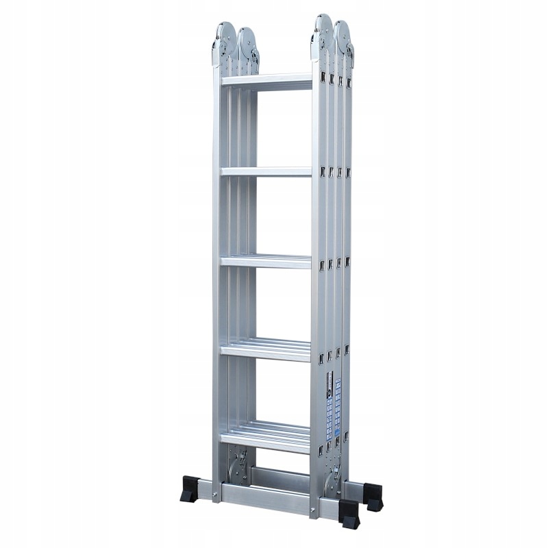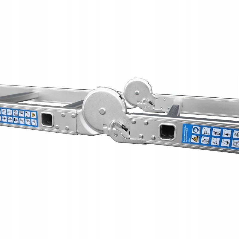 Універсальна алюмінієва драбина 4x4 - це універсальний інструмент, який ідеально підходить як для домашніх, так і для реконструкцій. Завдяки сформульованій структурі драбина може використовуватися в різних конфігураціях: як подвійна драбина "A", драбина "/" і як платформа. Його легкість і простота використання роблять його незамінним у кожному домогосподарстві. Після складання він займає мало місця, що полегшує його зберігання в гаражі або підвалі.