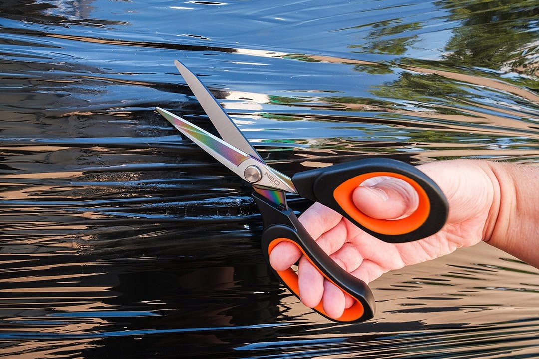 Набрижені, титанова обробка 200 мм 64-003 Neo інструменти-це ковані ножиці довжиною 200 мм. Оснащені лезами, покритими титаном, забезпечують довговічність, корозійну стійкість та зручність. У них є двоповернента ручка, яка впливає на комфорт різання. Рекомендується для універсальних програм.