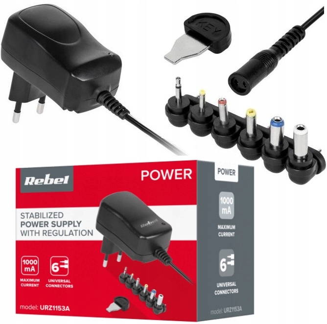 Універсальний стабілізований блок живлення 1000mA, продукт відомого виробника та дистриб'ютора електроніки - продукт надійної роботи. В комплекті шість штекерів, світлодіодний індикатор роботи джерела живлення. Максимальна навантажувальна здатність 1А. Вихідна напруга: 3В/4,5В/5В/6В/7,5В/9В/12В. Ми рекомендуємо цей продукт - дуже хороше співвідношення ціни та якості.