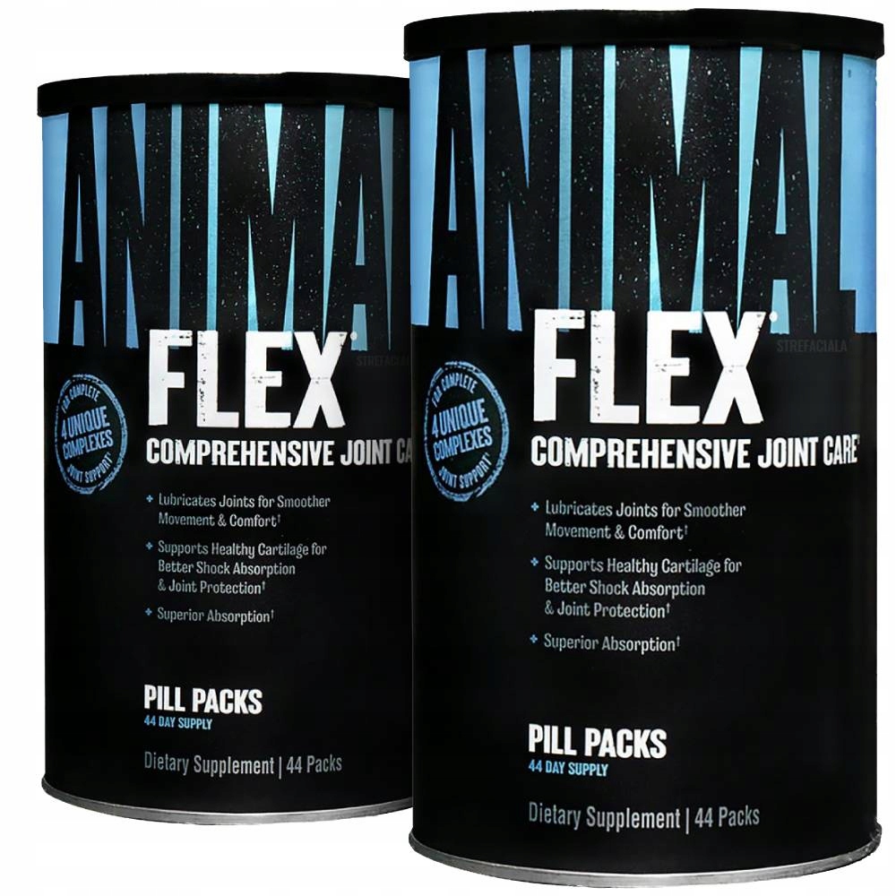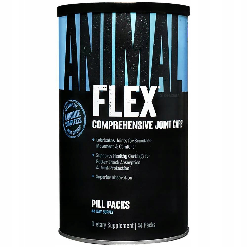 Animal Flex™ розроблено для того, щоб зарядити енергією основи вашого тіла, щоб допомогти захистити ваші суглоби від руйнування та деформації, які можуть спричинити високі тренувальні навантаження. Кожна упаковка Animal Flex™ містить декілька ключових інгредієнтів, що захищають суглоби: (1) комплекс інгредієнтів, що формують суглоби, які допомагають відновити та відновити сполучну тканину, (2) інгредієнти, які змащують (змащують) суглоби, що підвищує їх амортизацію під час підняття важких вантажів, (3) комплекс речовин, які зменшують біль і забезпечують реабілітацію, (4) комплекс вітамінів і мінералів, які допомагають підтримувати кістки в оптимальному стані. Animal Flex™ містить у зручній формі (кожен Animal Flex™ містить 44 окремі порції - пакети) усі необхідні інгредієнти для підтримки оптимального балансу ваших суглобів. Animal Flex™ — ваша захисна броня під час суворої війни із «залізом» у спортзалі.