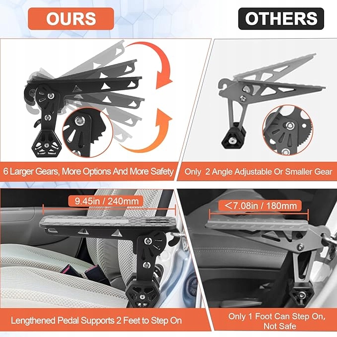 легко дістатися до даху транспортного засобу! Він підтримує обидві ноги до 199 кг, останні пороги автомобілів подібного роду вирішують усі недоліки на ринку. Сумісний з усіма транспортними засобами як для передніх, так і ззаду, забезпечує легкий та безпечний доступ до даху транспортного засобу.