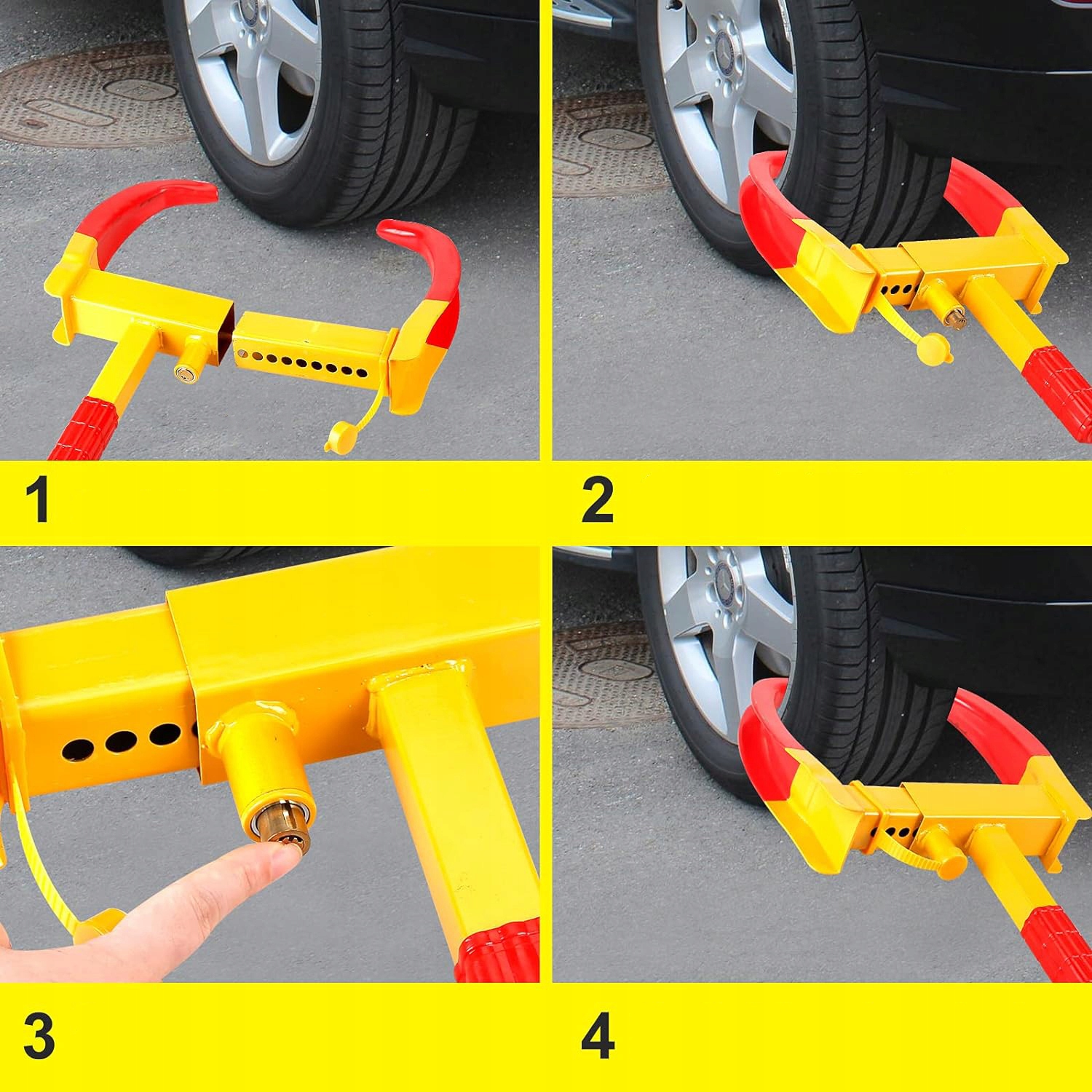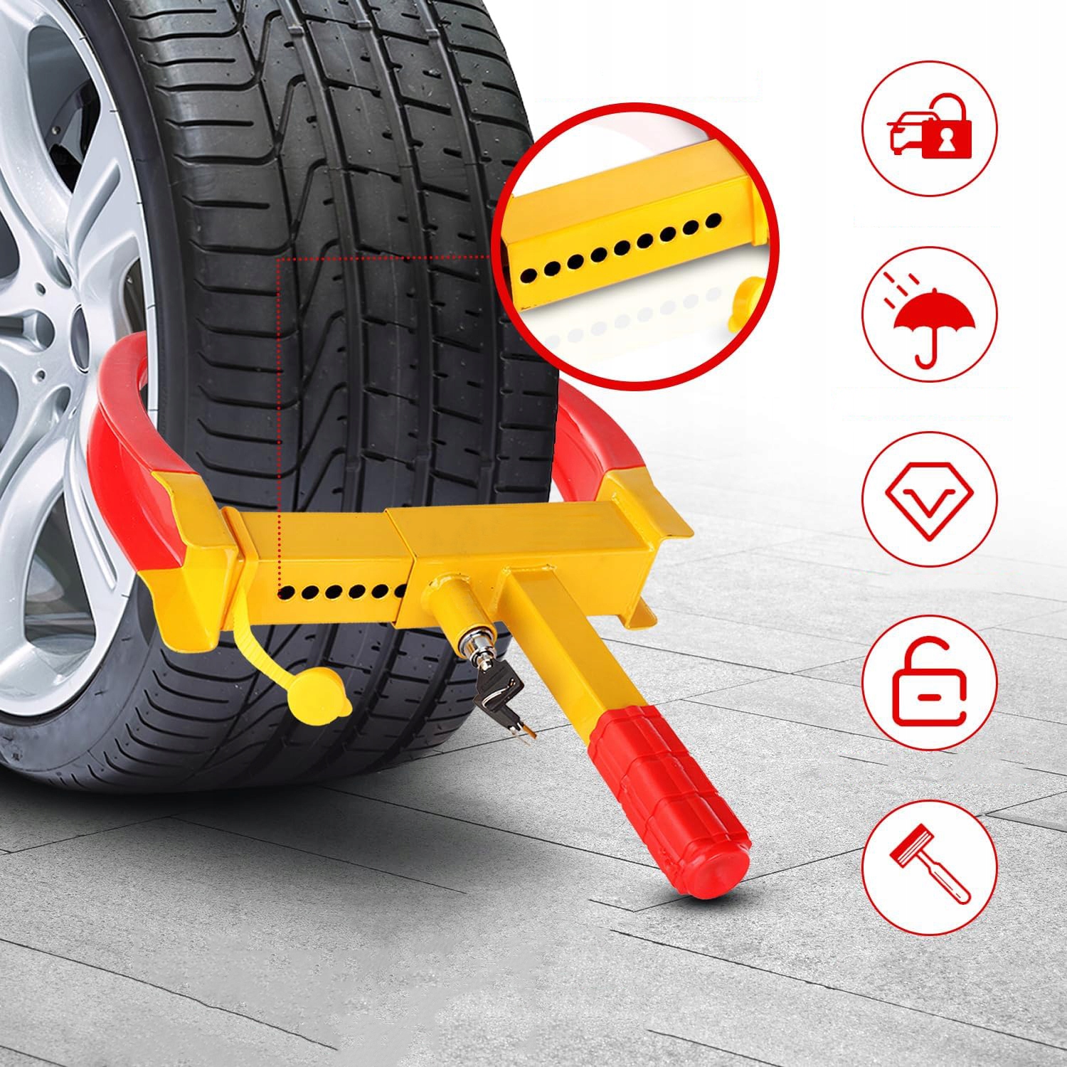 , жовті та червоні кольори цього захисного замку в очах цього захисного замка призначені для відлякування злодіїв. Після закріплення обраного транспортного засобу завдяки замку колеса ви можете використовувати кріплення для захисту замка від вологи і, таким чином, запобігти корозії.
