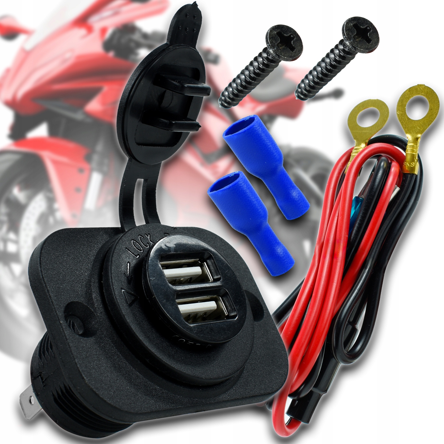 розетка з мотоциклів з USB -виходами. Універсальні результати роблять сокет сумісною з практично кожним пристроєм, доступним на ринку. Продукт має замінний запобіжник, який захищає встановлення мотоциклів!