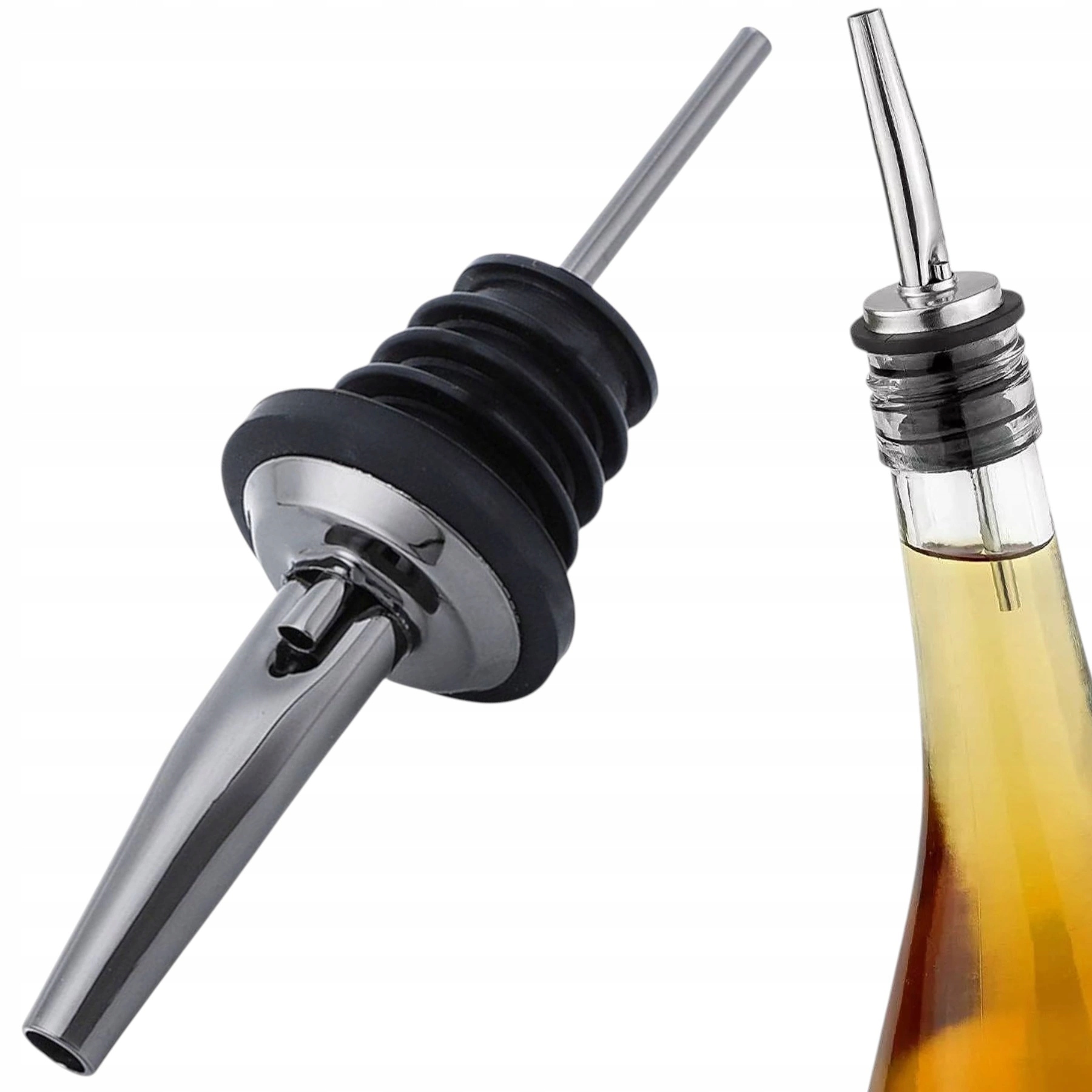 Ничко зазвичай виготовляється з нержавіючої сталі або міцного пластику, стійкого до спирту та масла. Пробка гарантує стабільність і герметичність - нічого не випадає і не протікає.