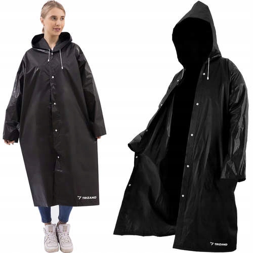 Плащ дуже довгий і додатково має капюшон, який на кінець має рядки. Ідеальний захист від дощу. Капюшон на зав'язках, який захищає голову та волосся від дощу.