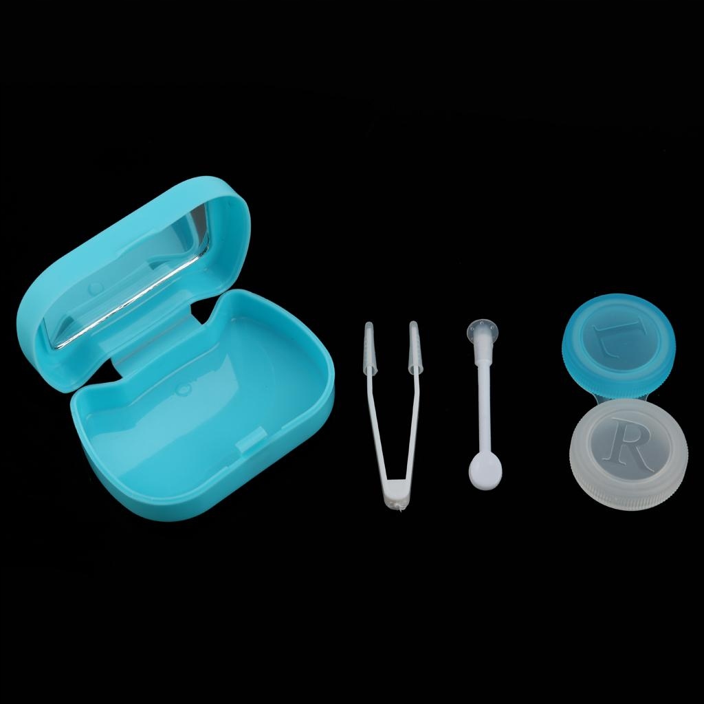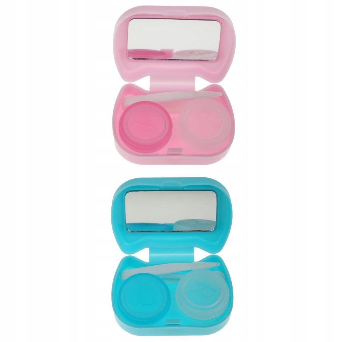 коробка з дзеркалом, пляшечка з рідиною для догляду подвійна, кліпса та мала.