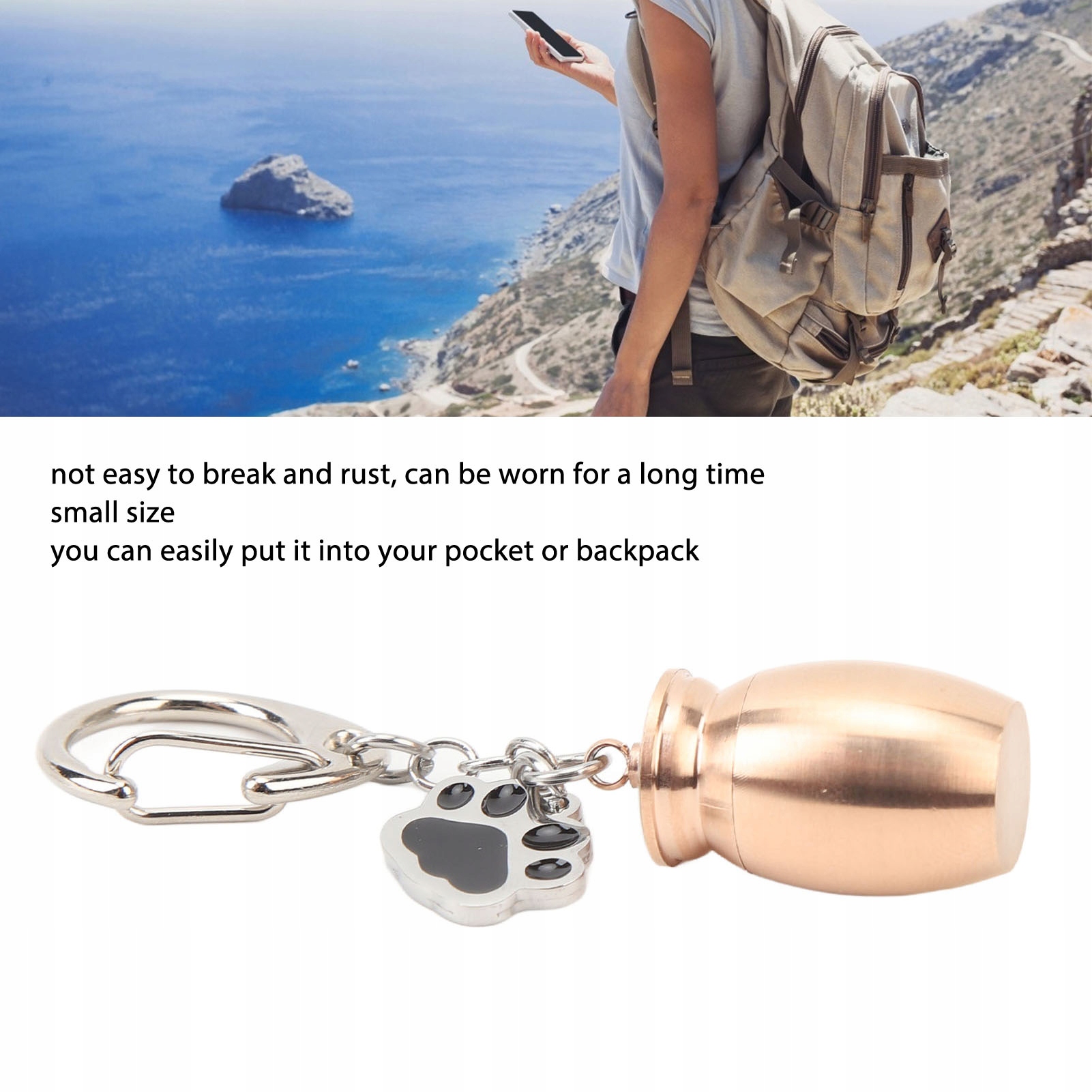 3. Кишеньковий розмір Ashes Peepsake: урна для собак порожня, загальна довжина 29 мм і зовнішній діаметр приблизно 15 мм. Загальна довжина ключа від урни для домашнього улюбленця становить близько 68 мм, його можна легко покласти в кишеню або рюкзак.