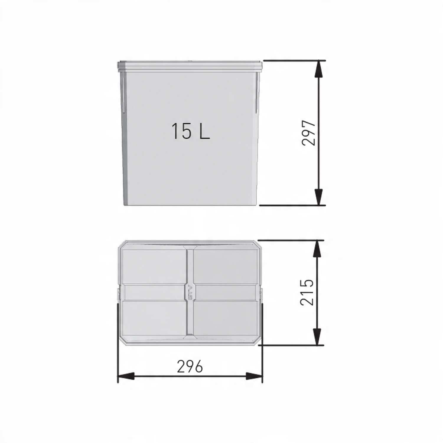 - Розміри контейнера: ширина - 296 мм, глибина - 215 мм, висота - 297 мм