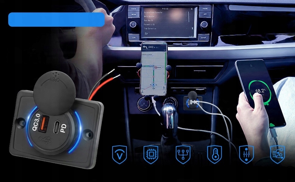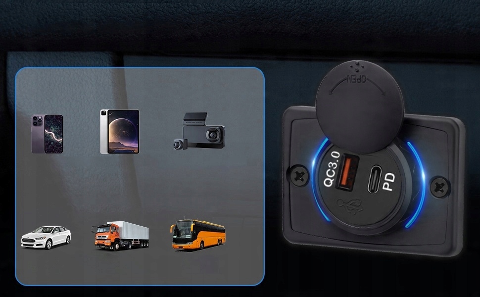 USB-C +B Charger Minting Socket для автомобіля 12В/24В на яхті