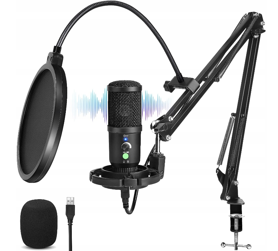 Професійний USB-мікрофон: у цьому мікрофоні використовується найсучасніший чіпсет HiFi. Частота дискретизації до 192 кГц/24 біт, ємнісна діафрагма: 16 мм, АЧХ від 20 Гц до 20 кГц. Таким чином, цей USB-мікрофон забезпечить вам більш чистий, м’який і рівний голос. Підходить для запису голосу/відео/інструменту.