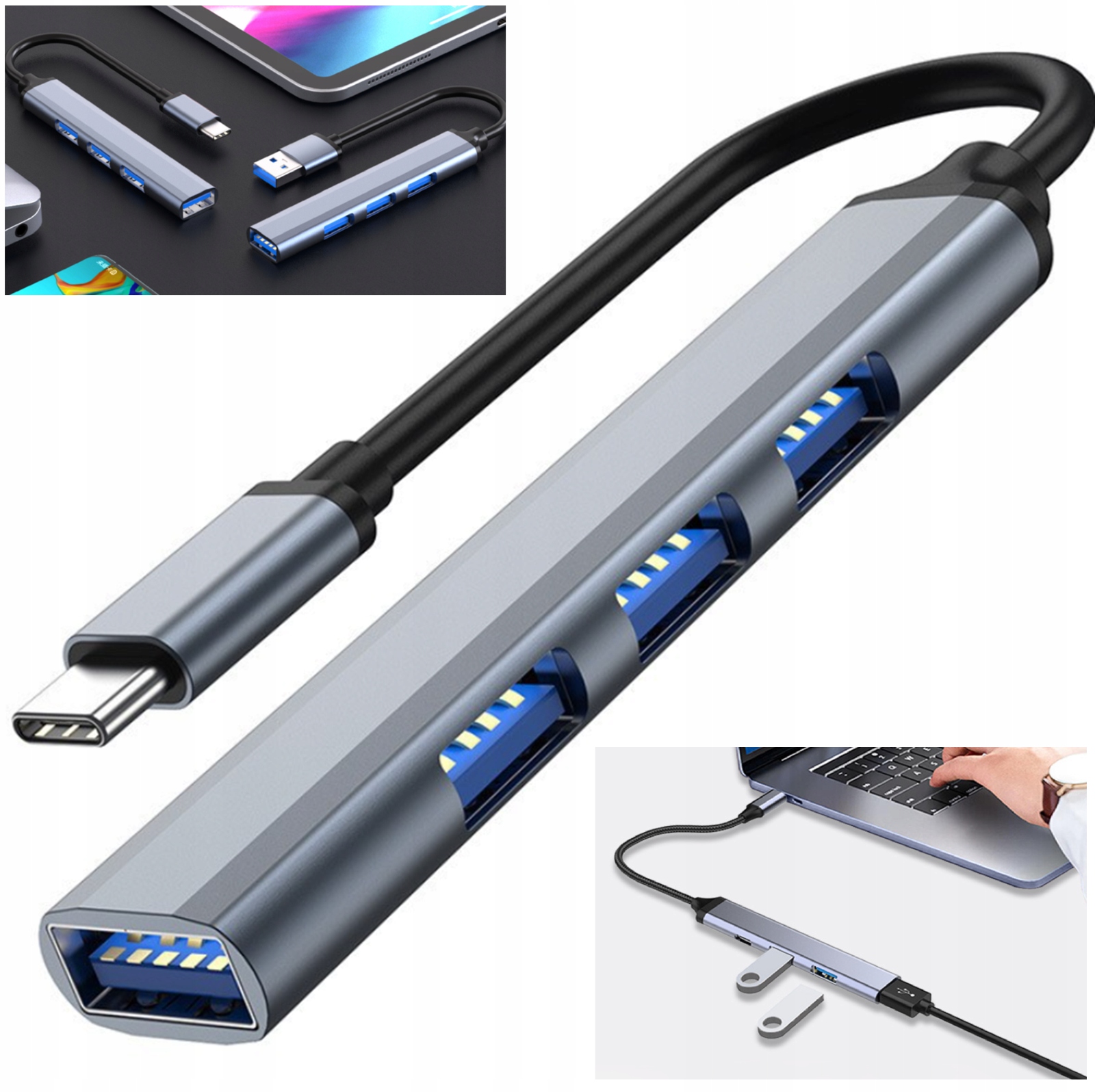 АДАПТЕР РОЗГАЛУЖУВАЧ ПЕРЕХІДНИК USB-C 3.1 OTG 4x USB-A