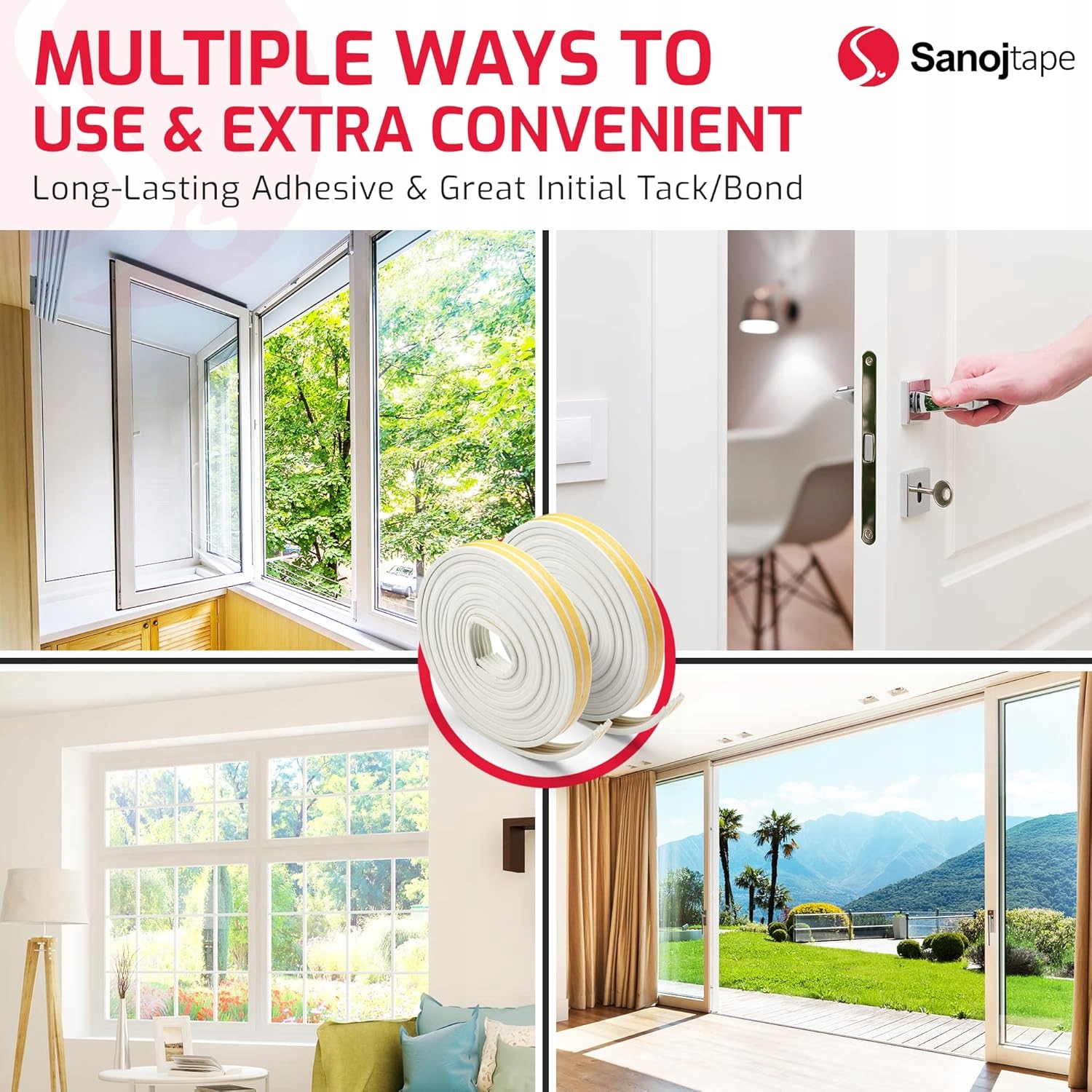 Sanojtape Sanojtape для ущільнення дверей та вікон (2 шт.), самоклеюча, захищає від негоди, 16-метровий E-профіль