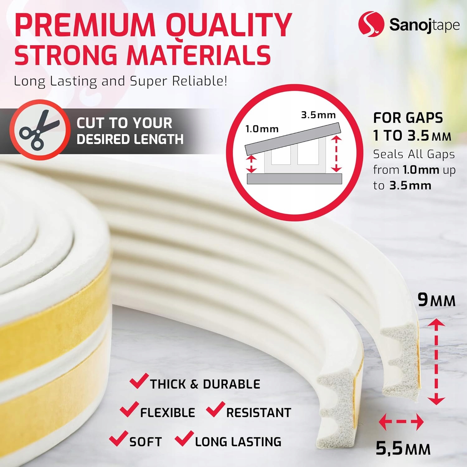 - SANOJ TAPE SWEDEN: високоякісна ущільнювальна стрічка, виготовлена в Італії для Sanojtape. Виготовлений з матеріалу EPDM, який є м’яким і міцним. Ідеально підходить для ущільнення, захисту від вітру, пилу, вікон, дверей та інших місць.