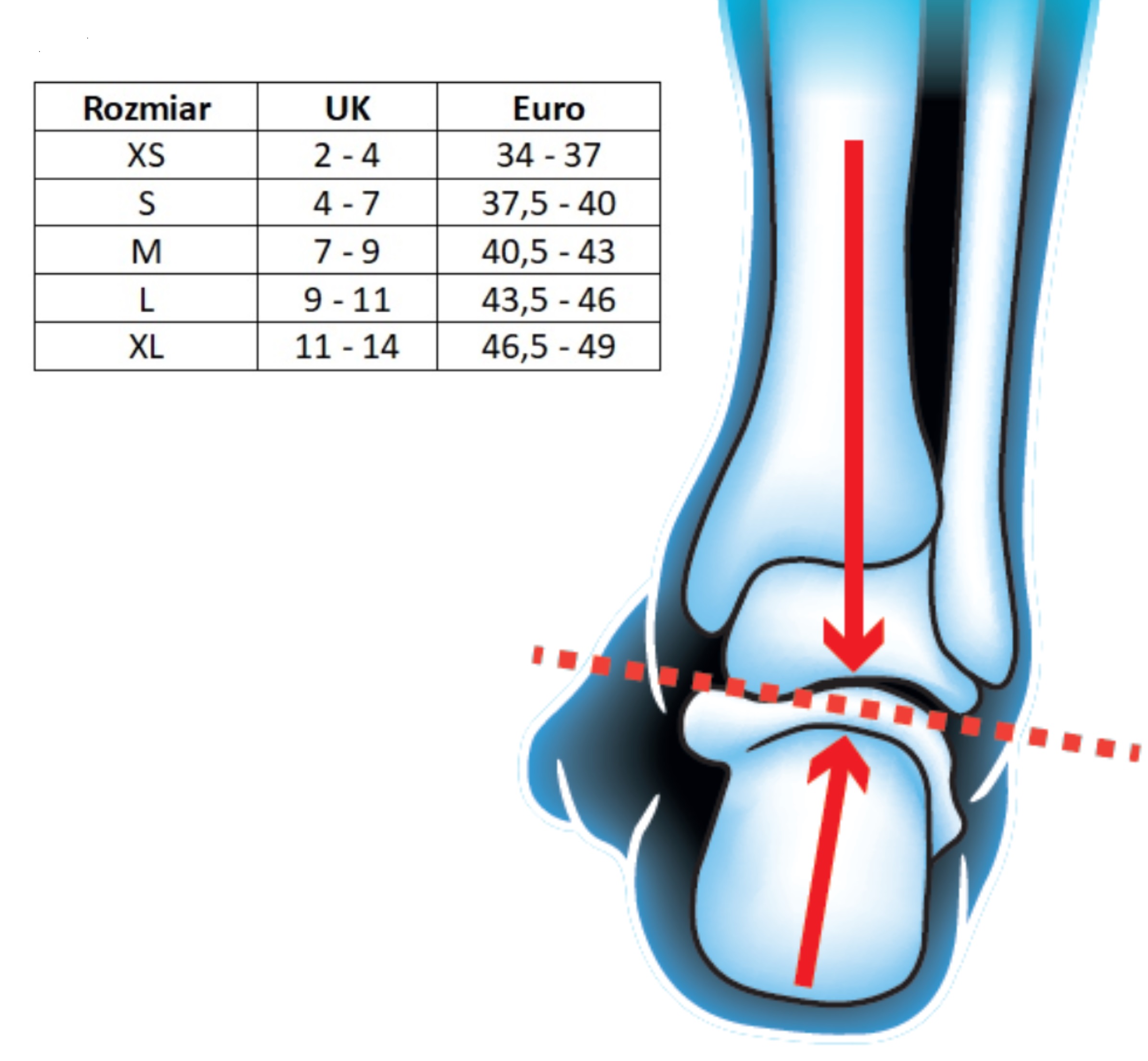 xs : 2-4 (Великобританія), 34-37 (євро), 24 см (макс. 7-9 (Великобританія), 40,5-43 (EUR), 28 см (макс. устілки)