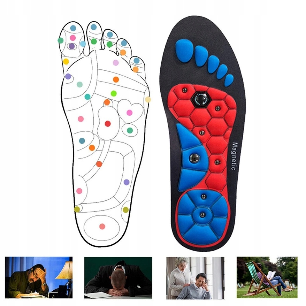 Ці сучасні магнітні вставки розроблено для стимуляції ключових точок акупресури на стопах. Завдяки цьому вони покращують кровообіг, знімають втому та допомагають підтримувати бадьорість протягом дня.