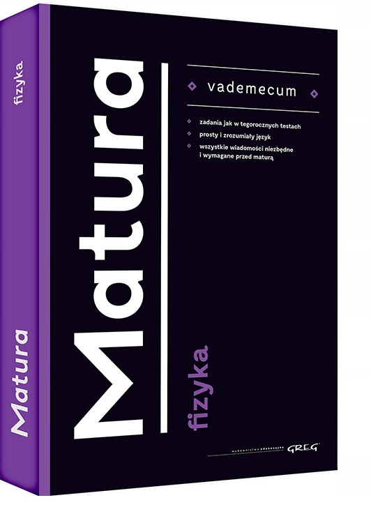 Vademecum Matura - фізика від видавництва GREG - це книга, яка містить увесь матеріал, необхідний для підготовки до іспиту Matura за його поточною формулою. Він узгоджується з останньою основною навчальною програмою, а також містить завдання I класу, які додатково виділено графічно.