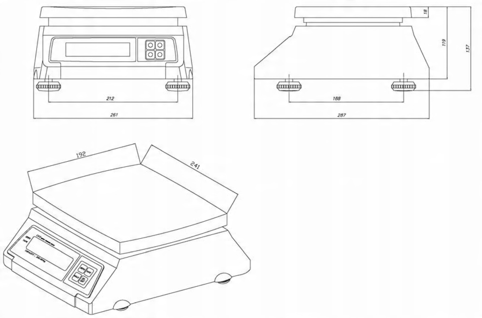 Стандартно ваги оснащені мережевим адаптером (9 В/300 мА).