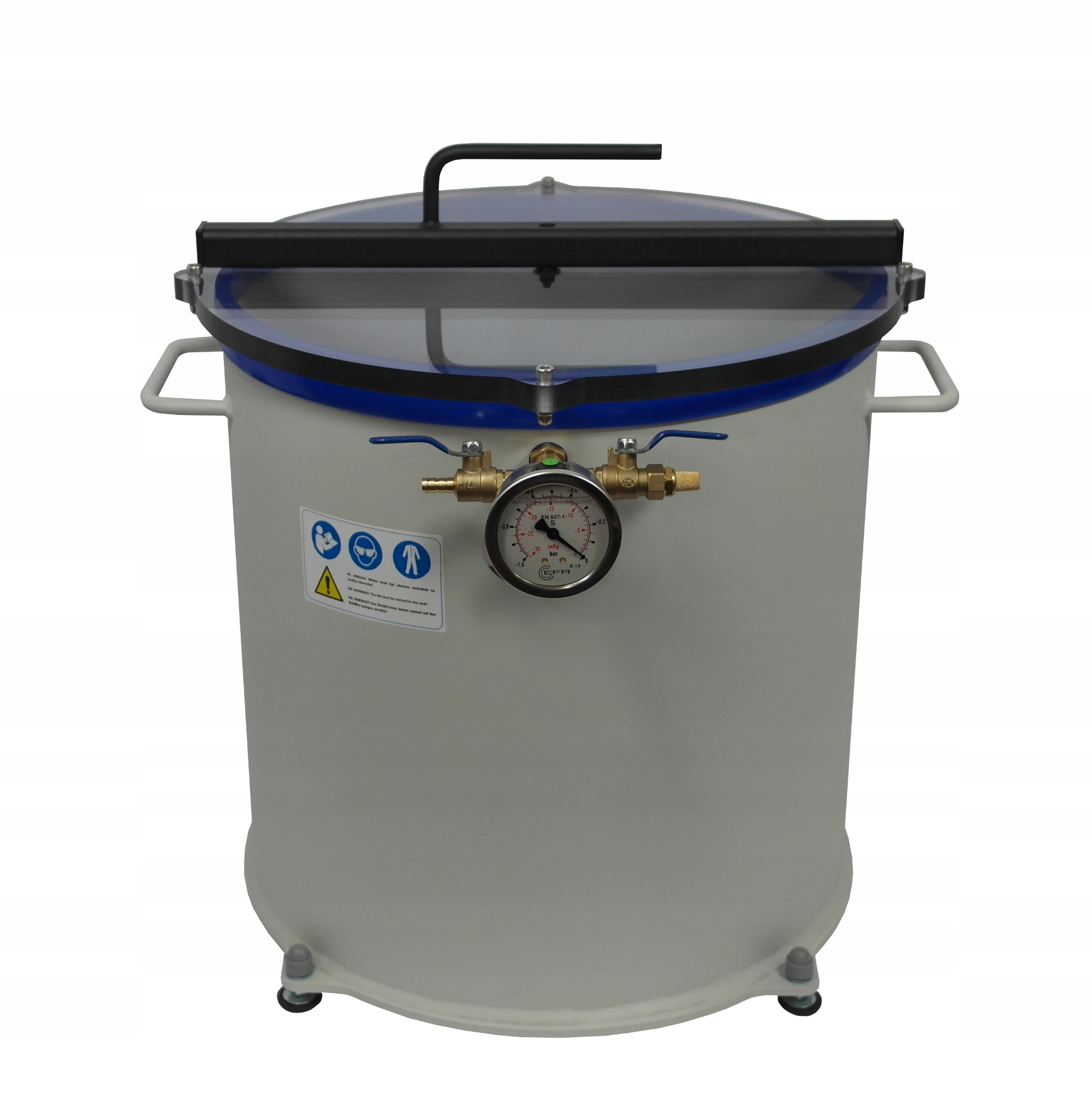 попередження. Ця палата не призначена для роботи зі смолою для стабілізації деревини, алкоголю, етанолу, ацетону, мономерів або полімерів на основі акрилу, смол на основі стирона. Для вищезазначених цілей ми рекомендуємо використовувати камери з віком загартованого скла, яке ми також маємо в нашій пропозиції.
