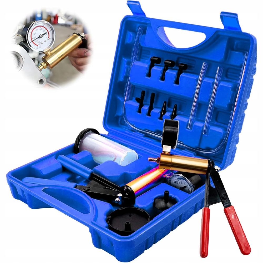 оснащений індикатором вакууму, зручним зчитуванням тиску, діапазоном тиску: 0-30inhg, 0-760 мм рт. Повний набір включає вентиляцію гальма та діагностику транспортних засобів. Вакуумний насос може перевірити та діагностувати багато типових деталей та систем у будь -якому транспортному засобі.