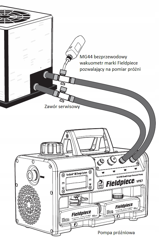 - Сумісне масло: Вакуумний насос Fieldpiece масло (високоочищене та оптимізоване для належного ущільнення та змащення)