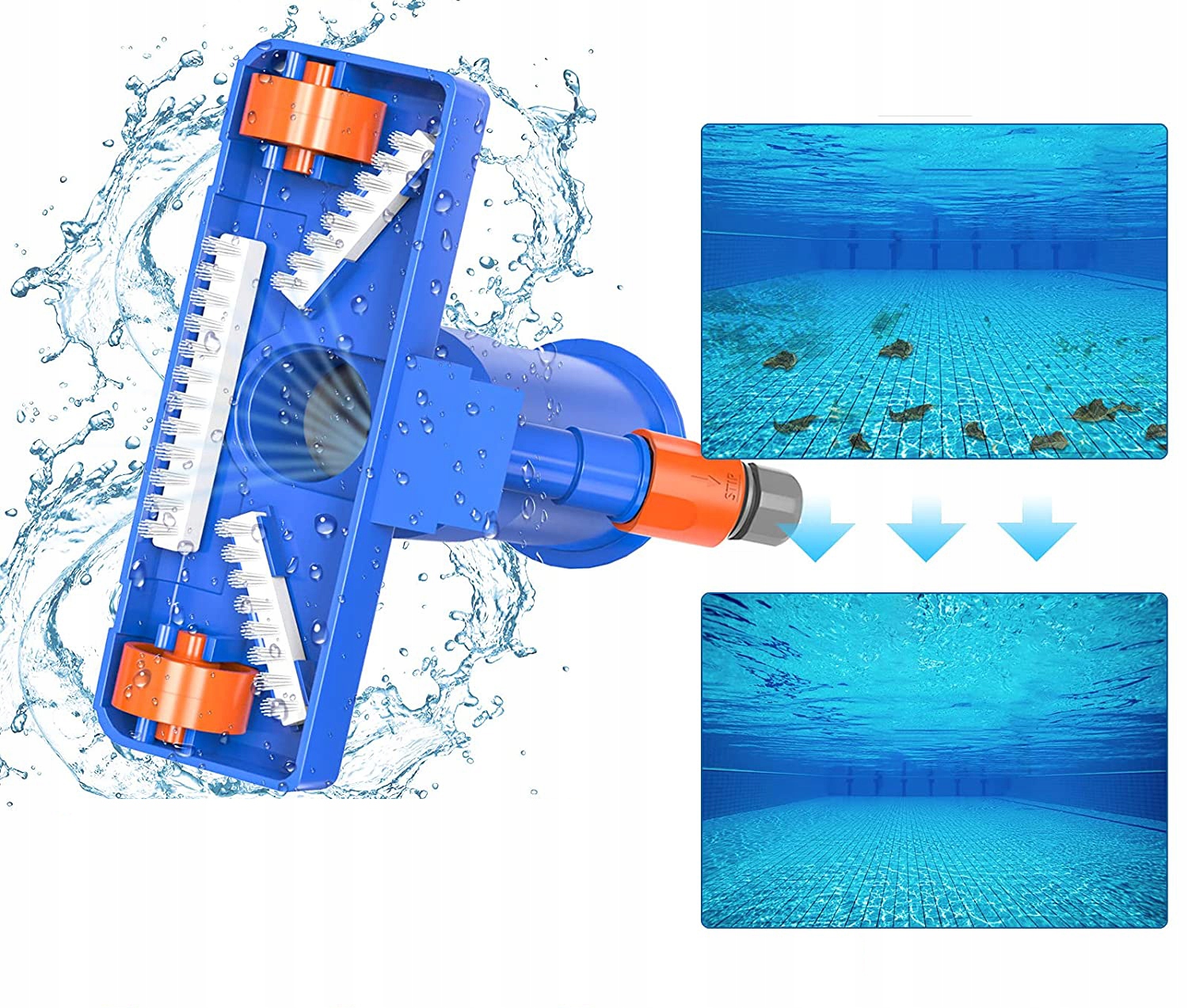 Голова вакуумного очищувача вбудованою пензлем є найважливішим елементом всього набору. Решта елементів вакуумного очищувача басейну з'єднані з головою , наприклад, резервуар для забруднення, садовий шланг та телескопічна палиця. під головою є м'які пензлики, які дозволяють легко та безпечно чистити та переміщувати домішки, накопичені внизу басейну. Голова має овальну форму, завдяки якому під час прибирання не буде пошкоджено дно та сторони басейну, це також буде чудово в овальних резервуарах.