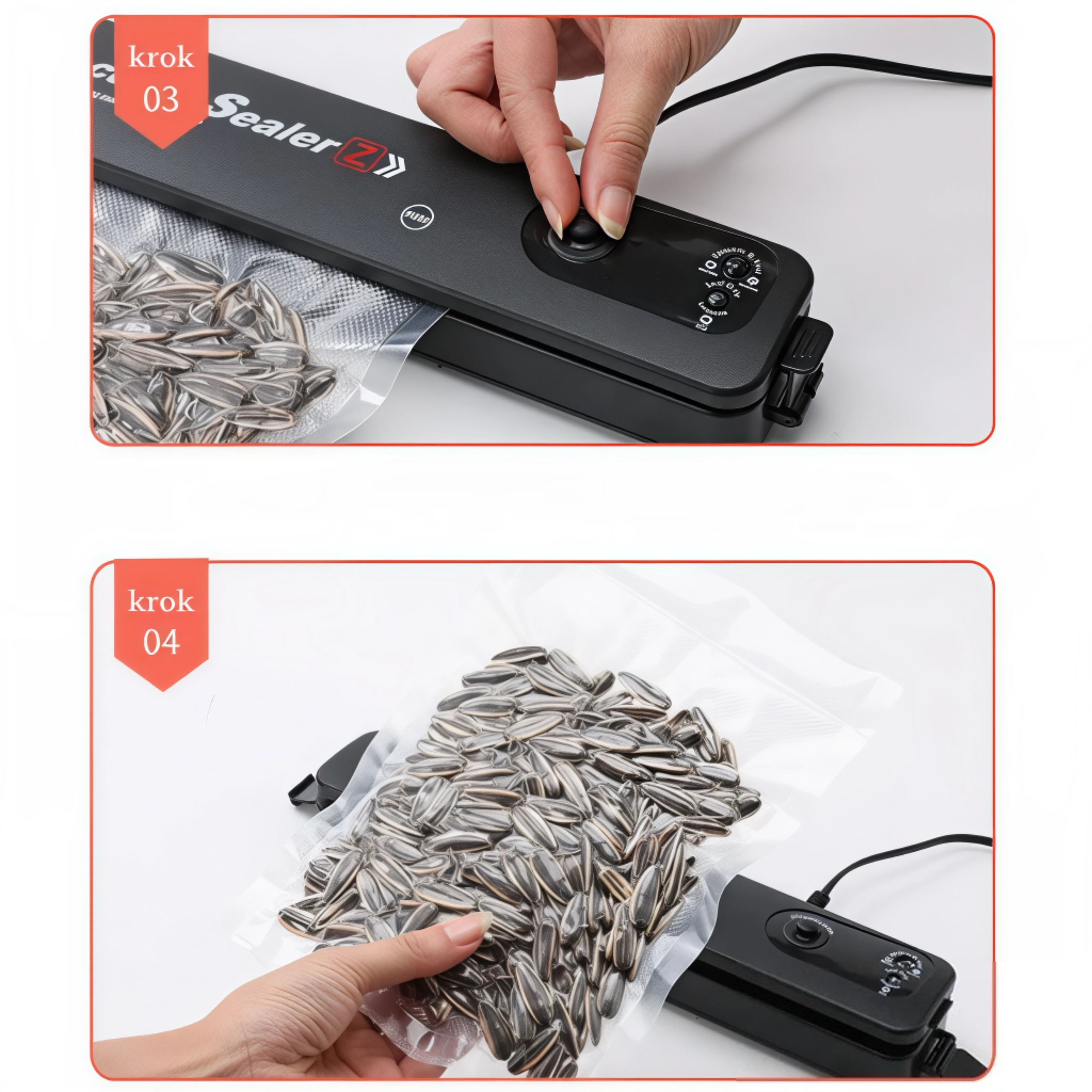 - Так, ущільнювач безпечний у використанні, а вакуумне пакування захищає їжу від бактерій і забруднення.