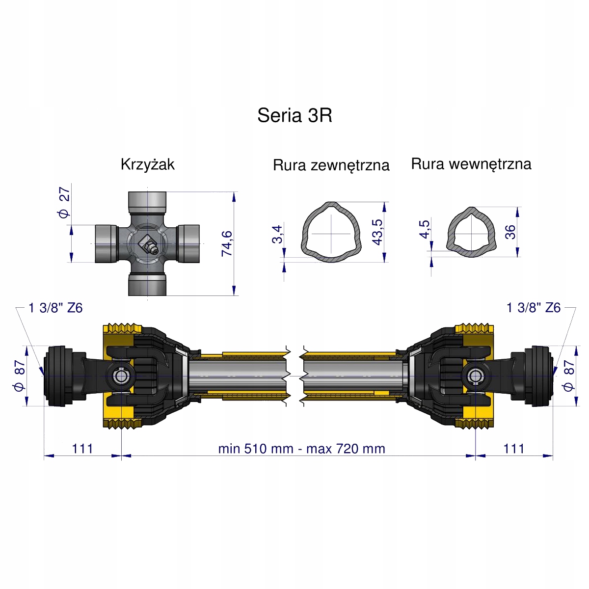Вал відбору потужності 510-720 мм 460 Нм 50210 CE 2020 серії 3R Waryński WA46-51 WA40-51