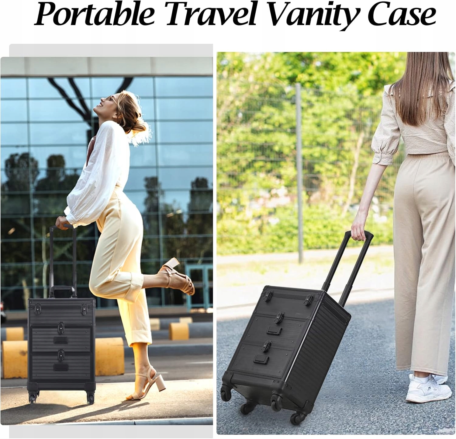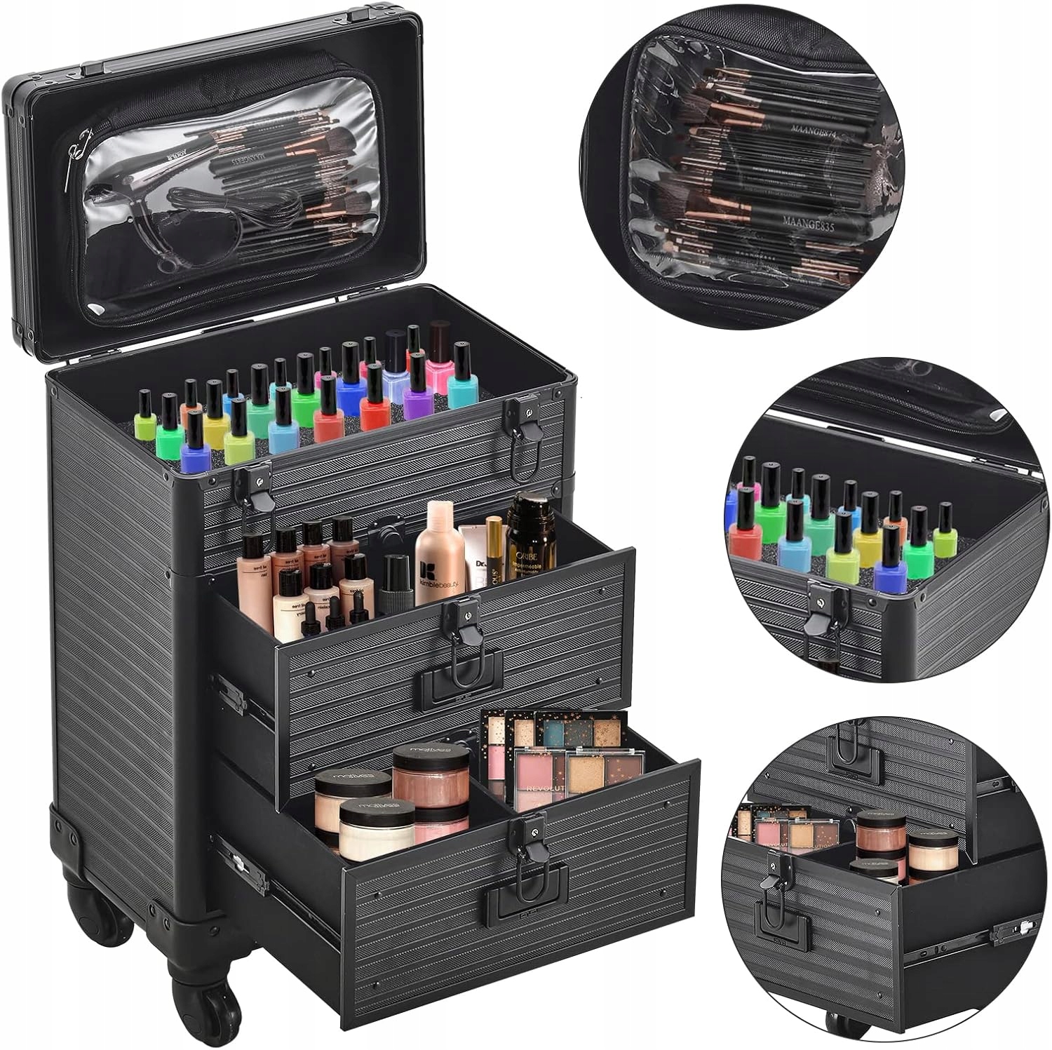 Валіза косметичка BTGGGG, чорна модель, дві шухляди на колесах