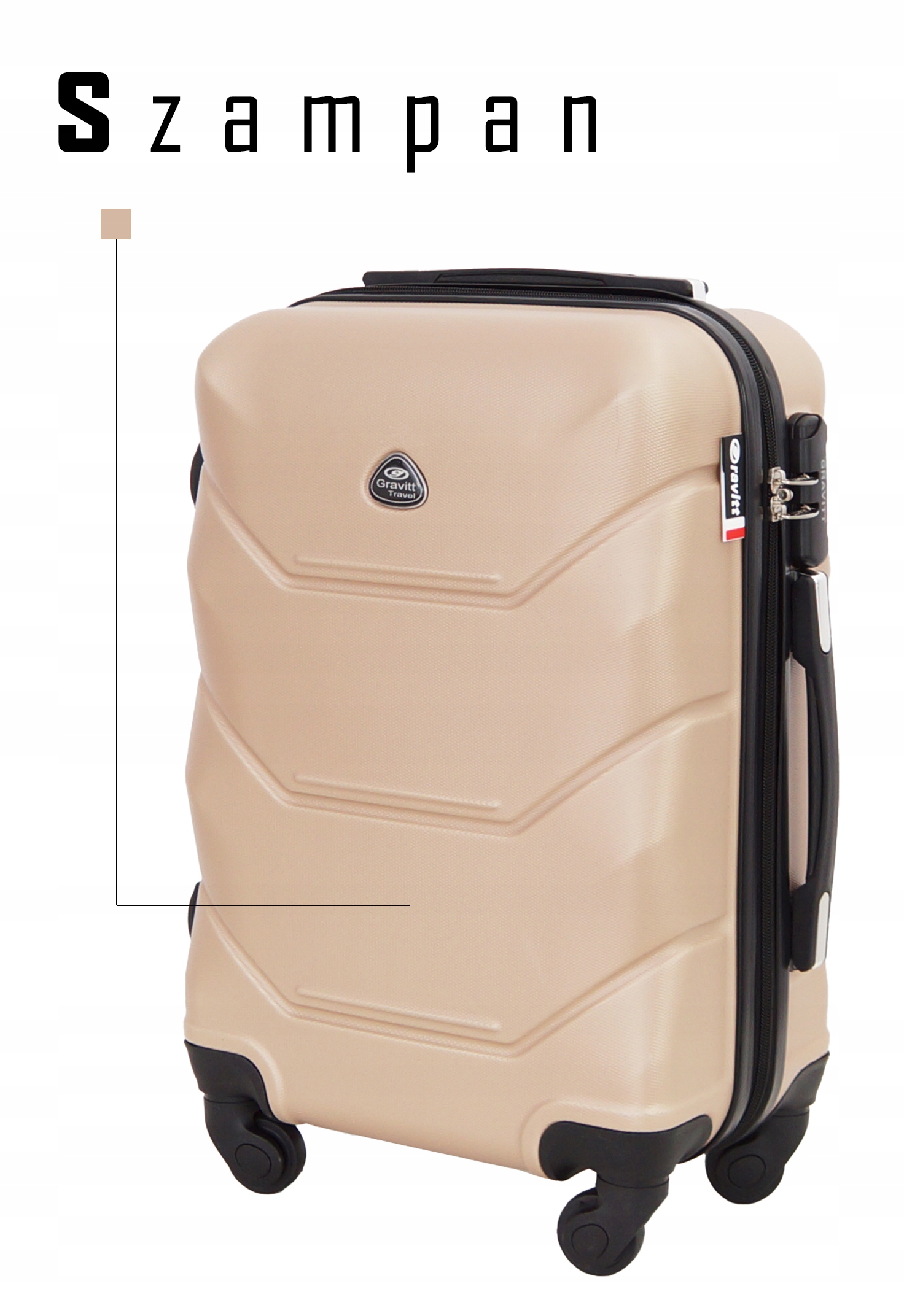 Валізи, представлені нижче, виготовлені з матеріалу ABS. Вони мають внутрішнє відділення та ремені для кріплення, які допомагають упорядкувати ваш багаж. Чотири поворотні колеса полегшують їх переміщення, а зручні бічні ручки полегшують перенесення.