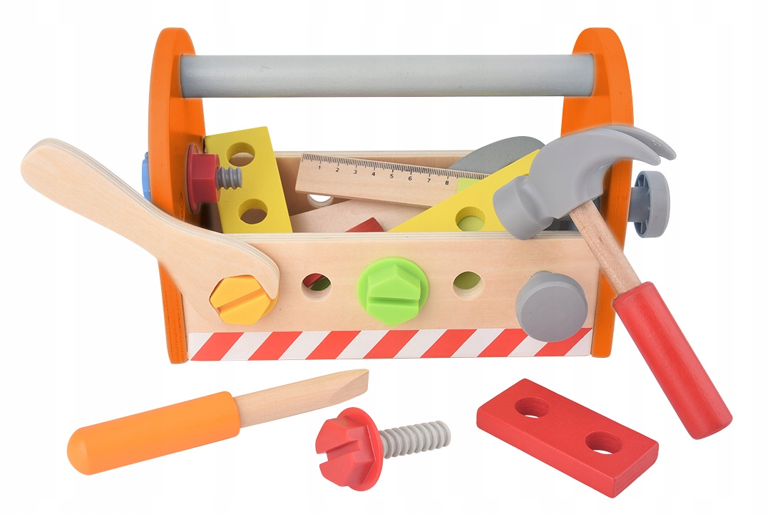 - Набір містить 22 окремі елементи - кейс для інструментів 1x, пила 1x, ріжковий ключ 1x, планки 1x, кутник 1x, молоток 1x, плоска викрутка 1x, заклепки 2x, шестерні 2x, гвинти 4x, гайки 4x.
