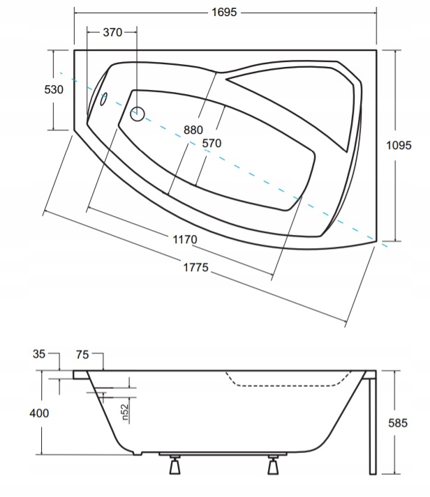 Інформація: при замовленні вказуйте ПРАВУ чи ЛІВУ сторону ванни