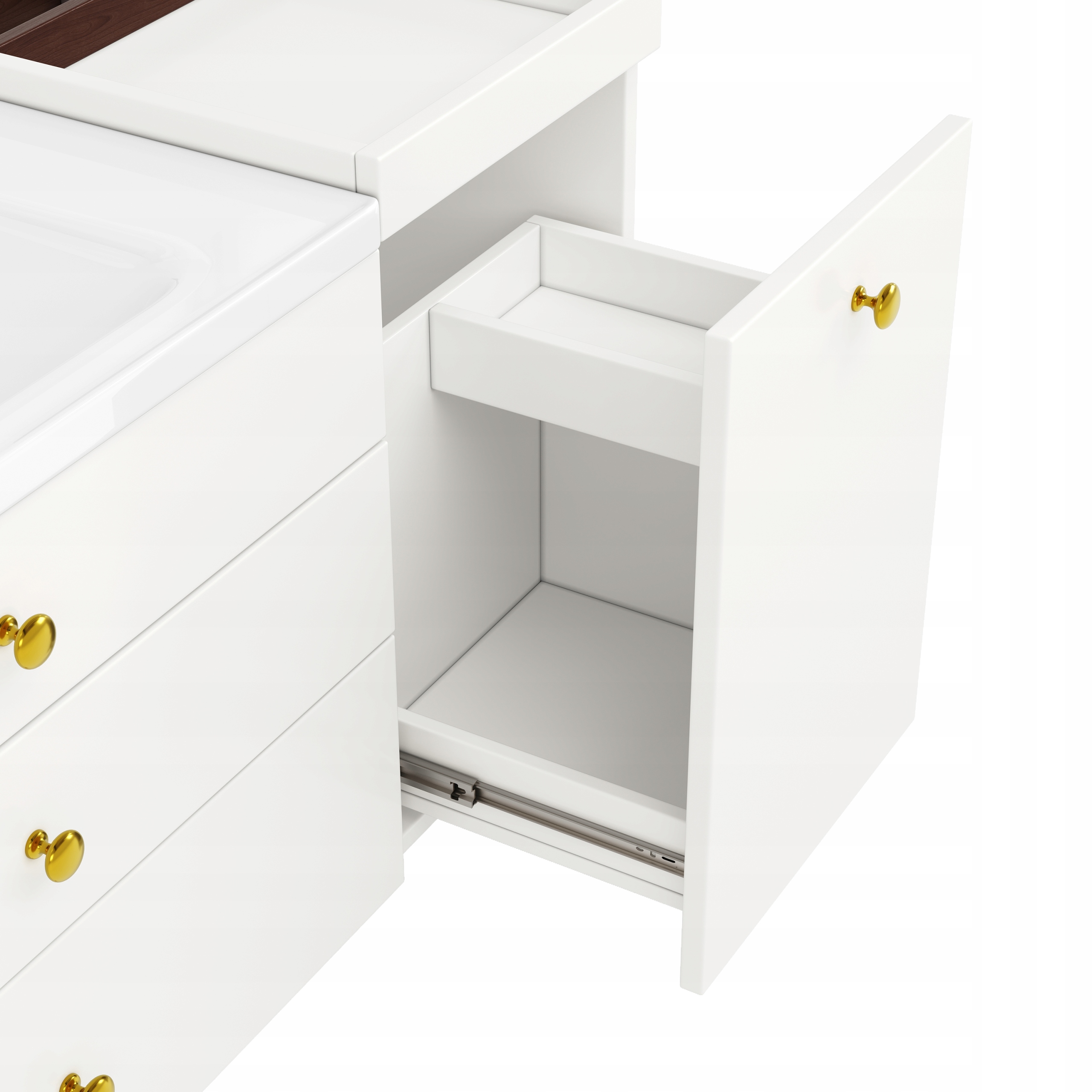- Право. Нижній ящик, який розділений на відсіки. ПРИМІТКА: Перший ящик зліва - це очевидний ящик (призначений для мийки) зі знімними відсіками, які можуть бути гнучко пристосовані до потреб різних типів умивальників.