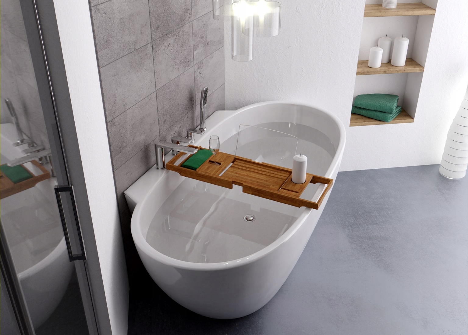 Окрема/підвісна овальна ванна ScandiBath Mandal + СИФОН + ПОЛИЧКА