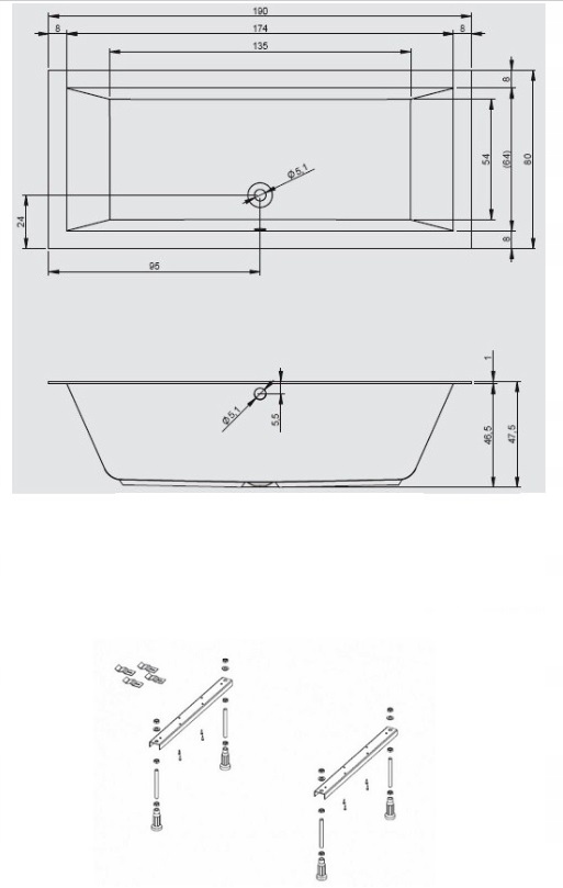 - каркас , ніжки ванни та монтажні елементи в комплекті
