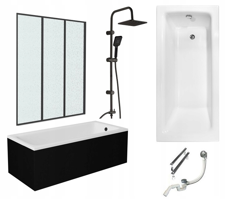 ВАННА TALIA 130x70 + КОРПУС МАТОВИЙ ЧОРНИЙ + СИФОН + НІЖКИ + ЕКРАН + КОЛОНА