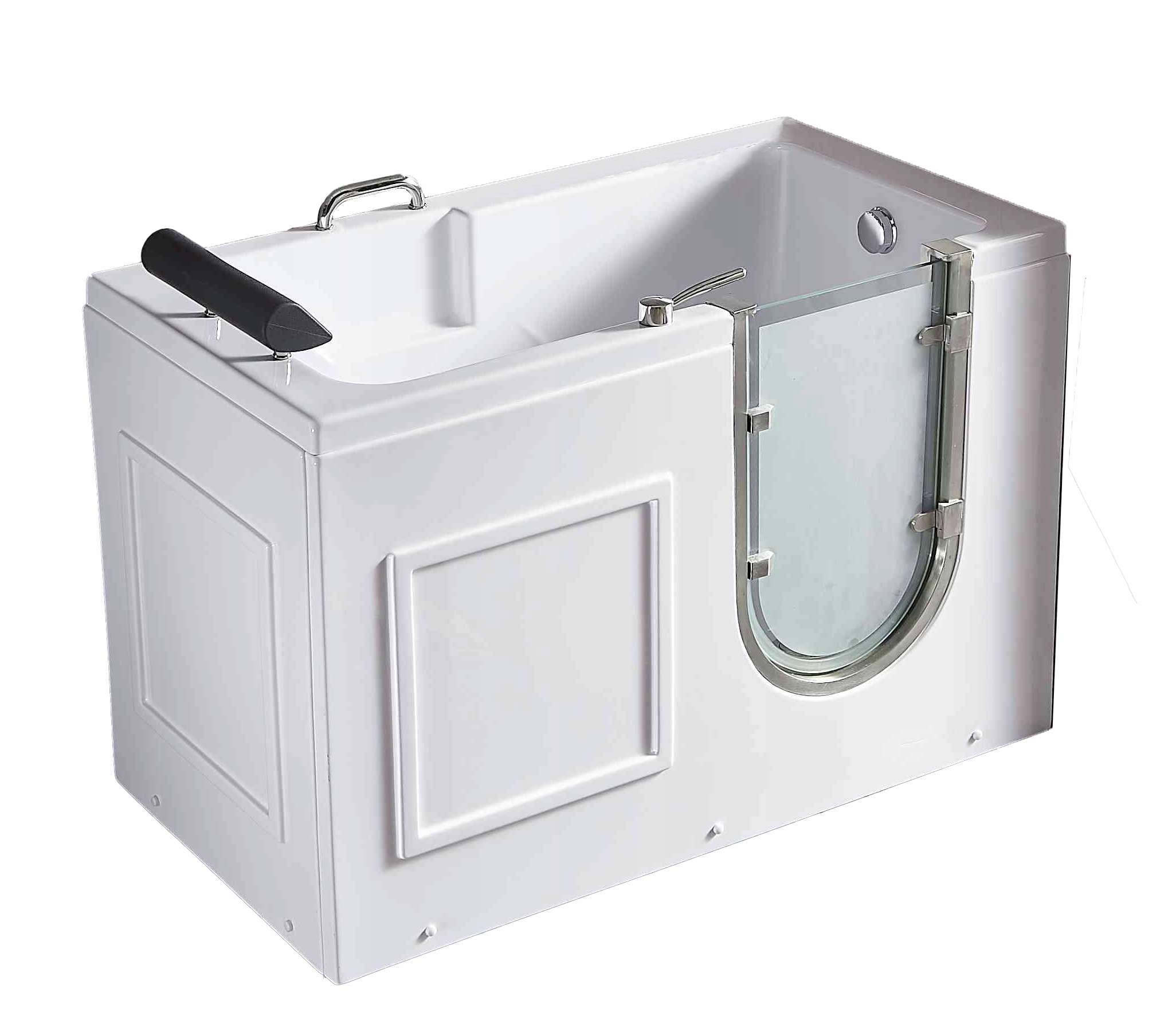 Ванна MEDICA з дверцятами доступна в лівосторонньому та правосторонньому варіантах - ця пропозиція стосується правого варіанту. У нашій пропозиції також є відкриваючі ванни з дверима більших розмірів. Кожну ванну можна додатково обладнати гідромасажною системою з нашої пропозиції джакузі. Гідротерапевтичні ванни виготовляються в будь-якій конфігурації - за інструкцією замовника.