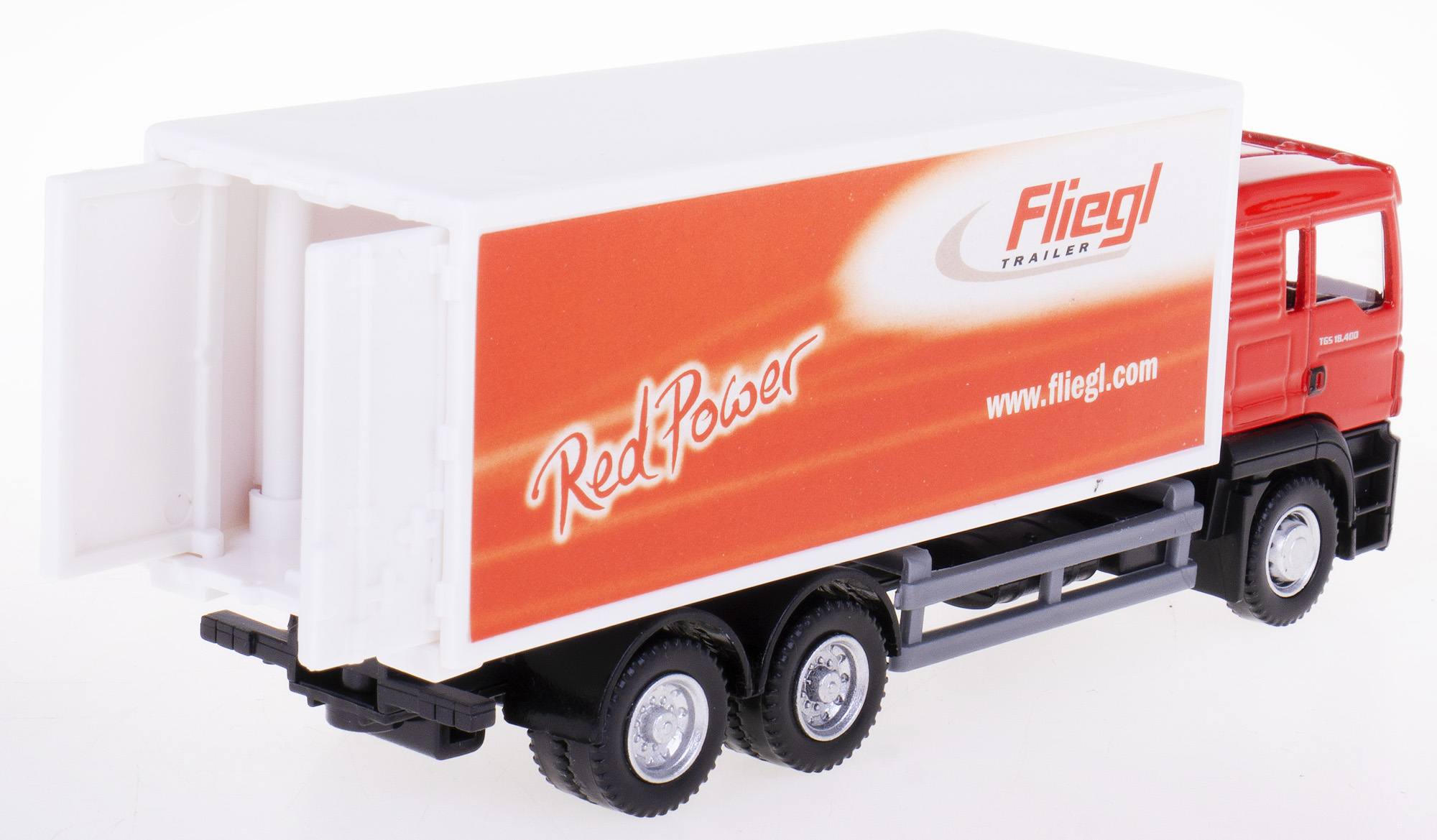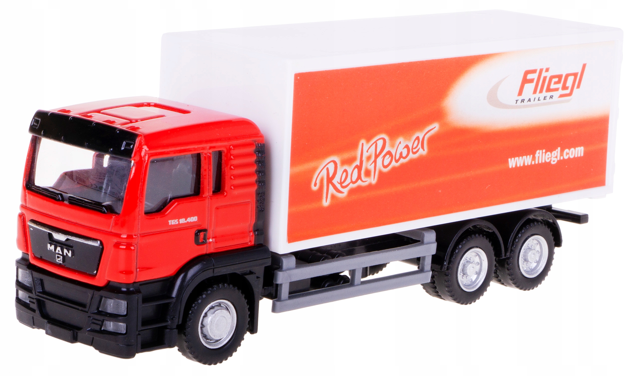 Металева модель вантажівки MAN TGS з пластиковим причепом із логотипом FLEIEGL виконана дуже точно в масштабі 1:64.