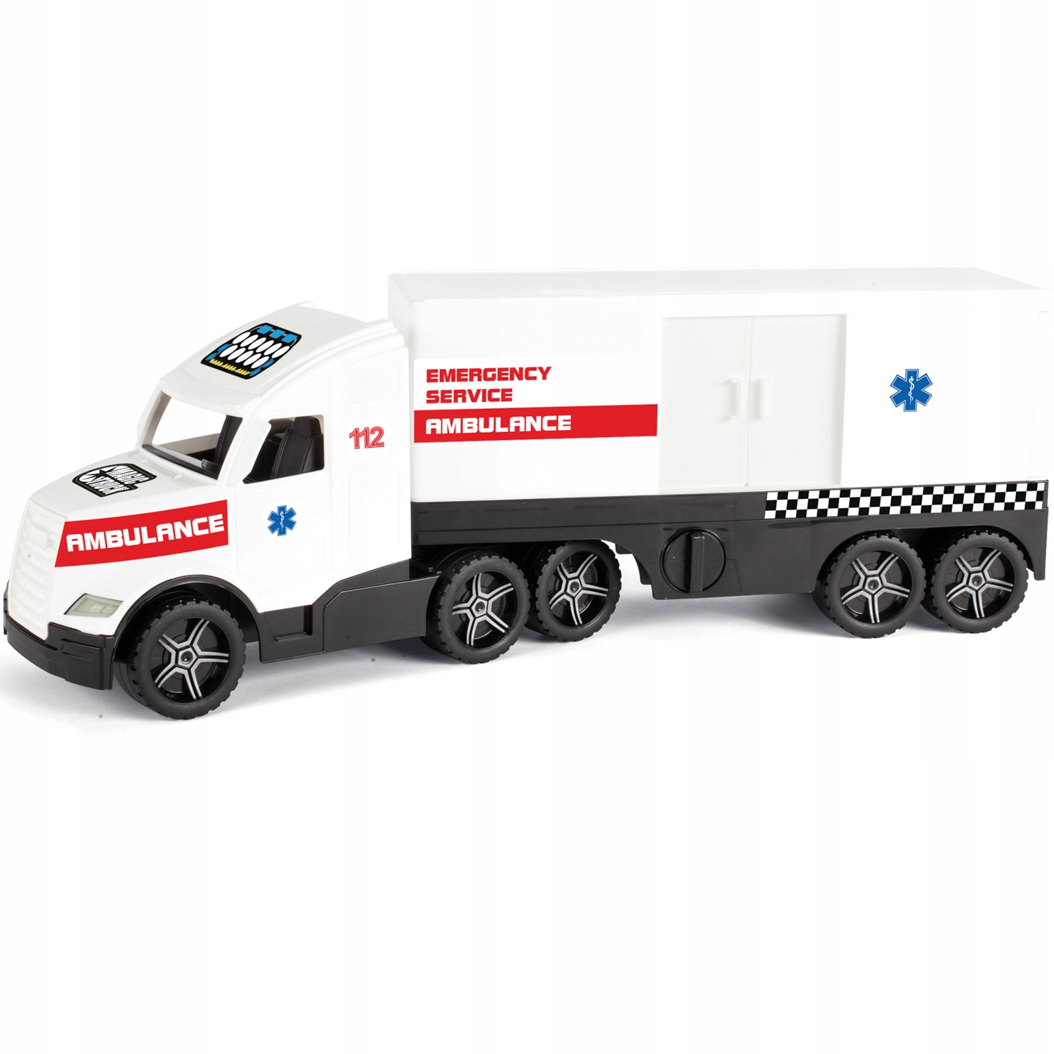 Чарівна швидка допомога в білому кольорі з червоними акцентами має скручену коробку для завантаження, яку можна прикріпити до транспортного засобу двома способами. Контейнер має ковзаючі бічні двері та відкриваючі двері, завдяки якому ви можете завантажити на нього різні предмети. У напівпричі є висувні ноги підтримки, які дозволяють створити з нього незалежний трейлер. Транспортний засіб виготовлений з матеріалів, безпечних для дітей. Велика перевага - довговічність та сила структури, а це означає, що іграшка може служити дітям роками.