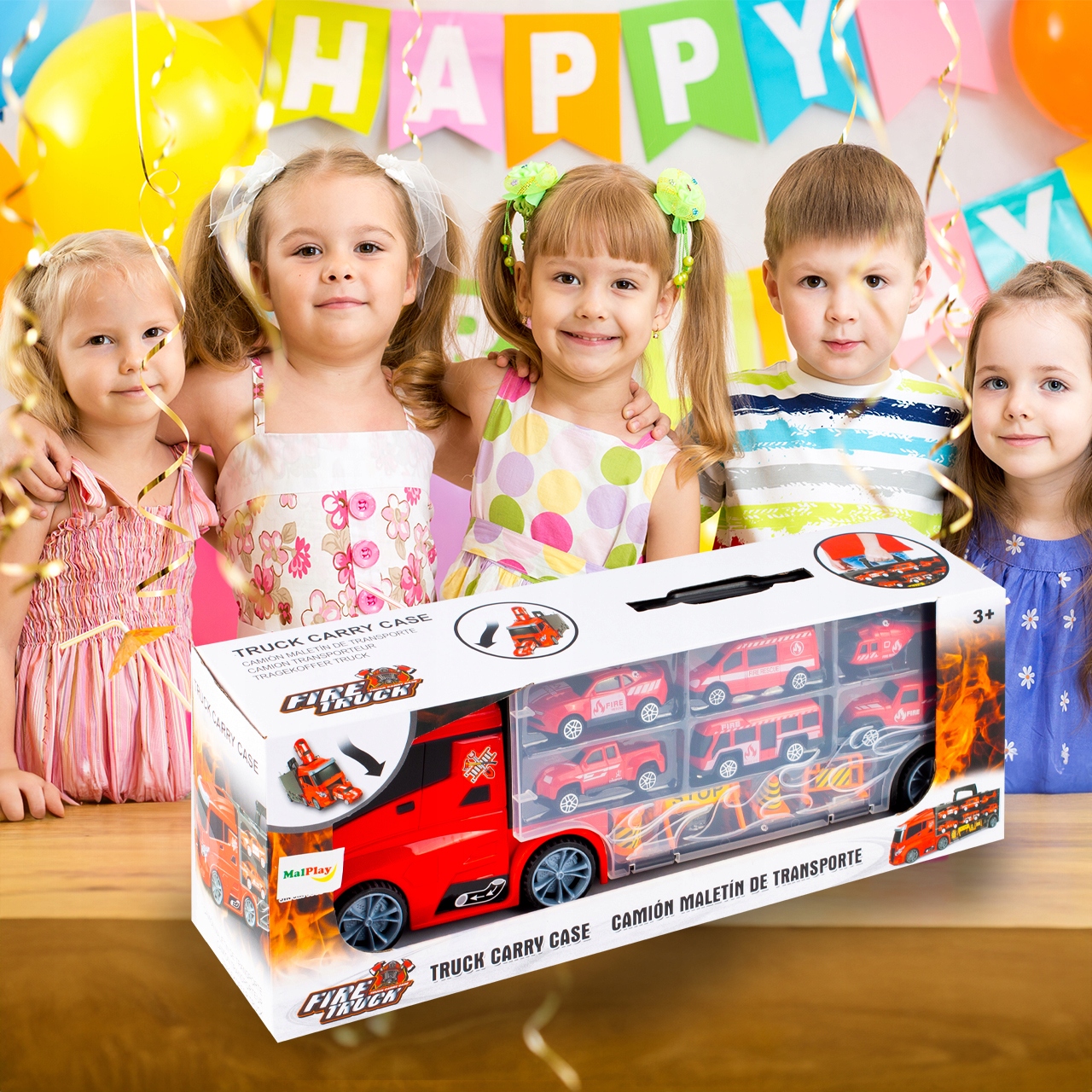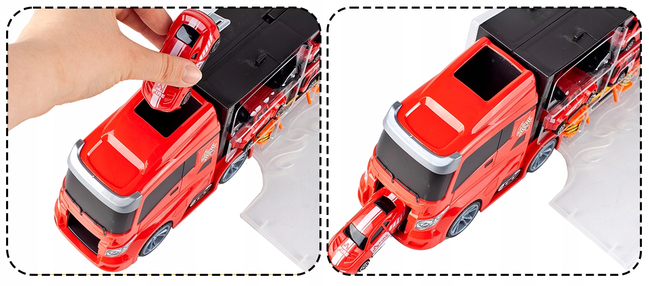 Вантажівка сама по собі є не тільки чудовою іграшкою, але й служить складом для менших автомобілів.