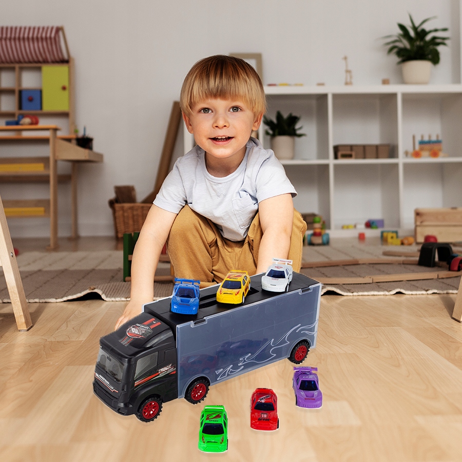 За допомогою цієї іграшки діти можуть прикидатися водіями вантажівок і доставляти іграшкові машинки в різні місця. Цей тип іграшок не лише розважає, але й розвиває дитячу уяву та творчі здібності, заохочуючи їх створювати власні історії та сценарії, пов’язані з дорожнім рухом.