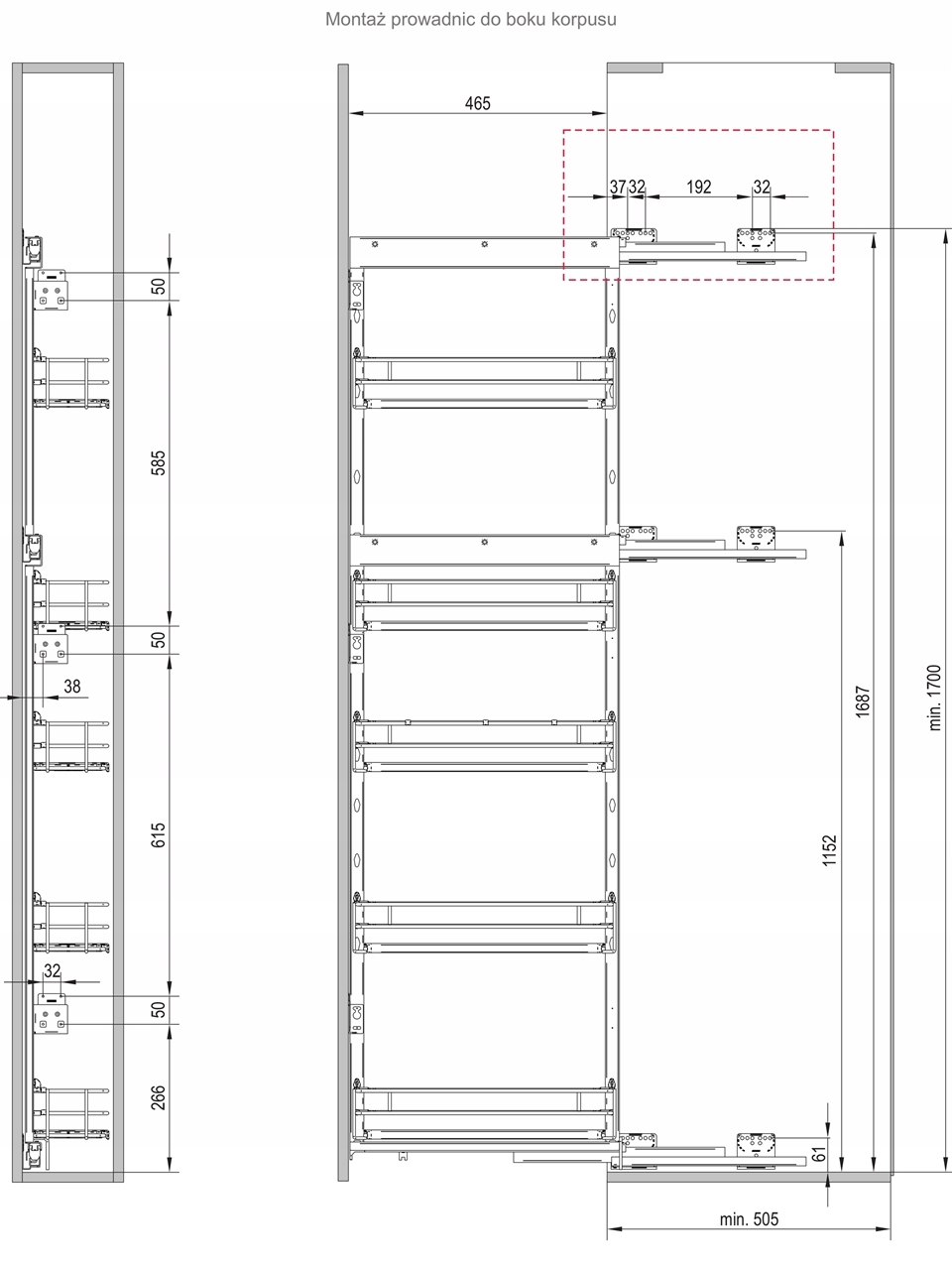 Вантажний максі 20 кошик для шафи 20 см висота 1700 мовчазний закритий білий правий круїз