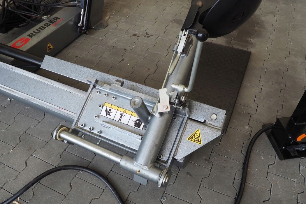 Опис шиномонтажного пристрою: призначений для монтажу та демонтажу камерних і безкамерних шин, для обслуговування коліс вантажних автомобілів, автобусів, сільськогосподарських машин, бортоломної пластини та кігтя, розміщеного на обертовій головці, що дозволяє швидко замінити інструмент, спеціально профільована бортова плита дозволяє ефективно демонтувати шини без ризику пошкодження, рухома платформа для швидкого та точного розвалу коліс, безпечна керуюча напруга (24 В) виключає ризик ураження електричним струмом, керування пристроєм з мобільної колонки
